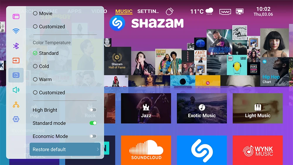 Recurso de espelhamento de tela sem fio, suporte Airplay, Miracast, DLNA