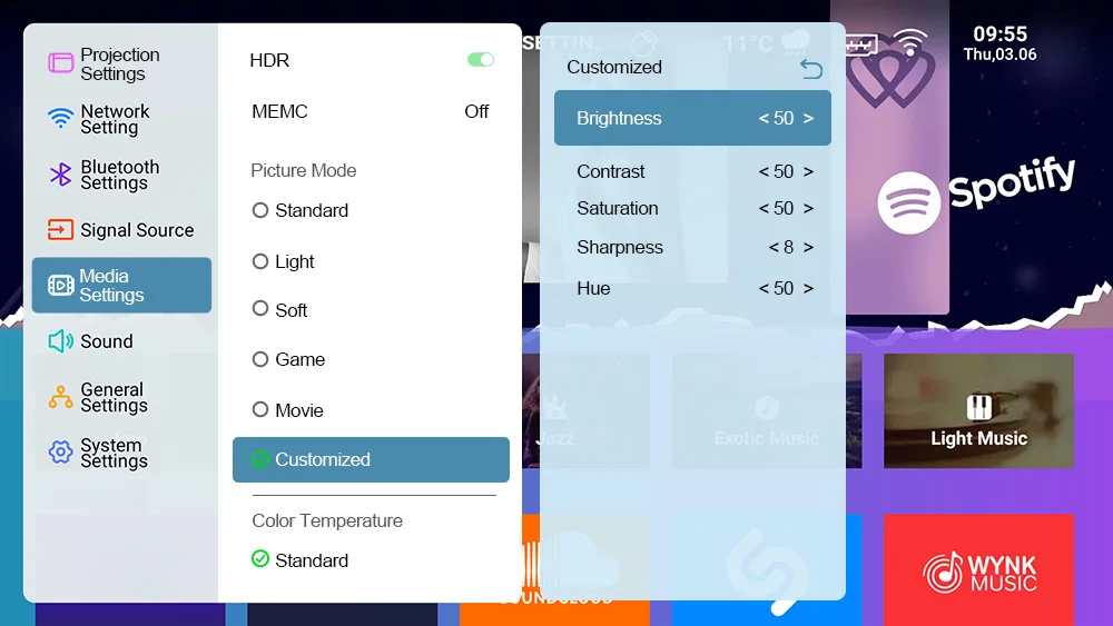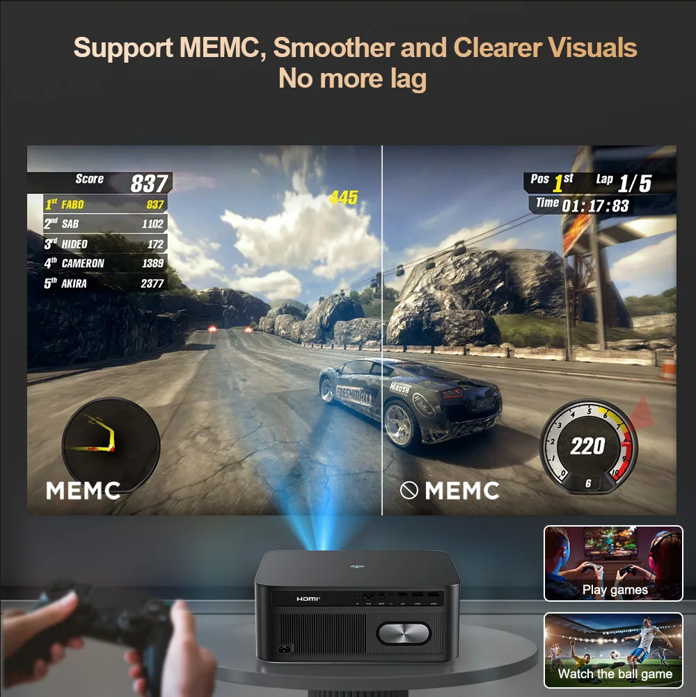A grande maioria dos projetores no mercado tem uma latência de cerca de 100-250 ms, e suas taxas de atualização também são insuficientes, resultando em uma experiência de jogo ruim.Este projetor de jogos suporta MEMC, visuais mais suaves e claros, sem mais atraso