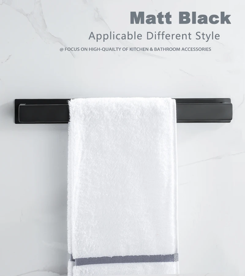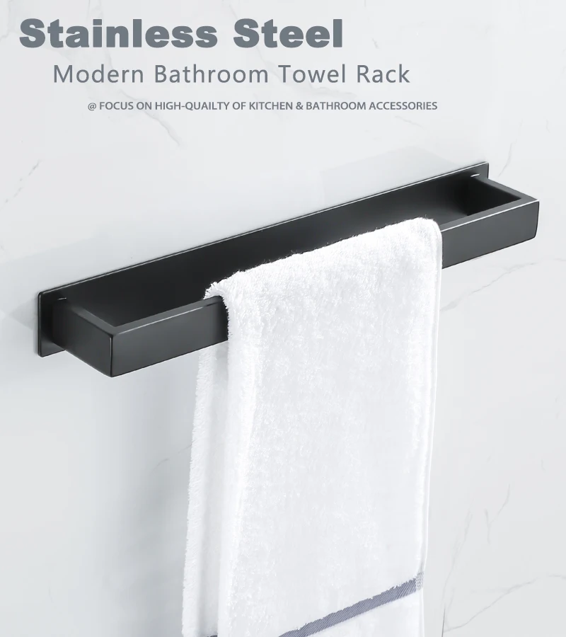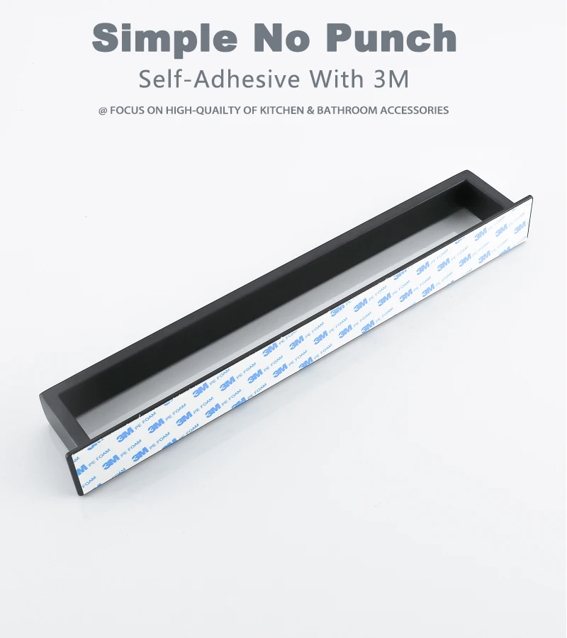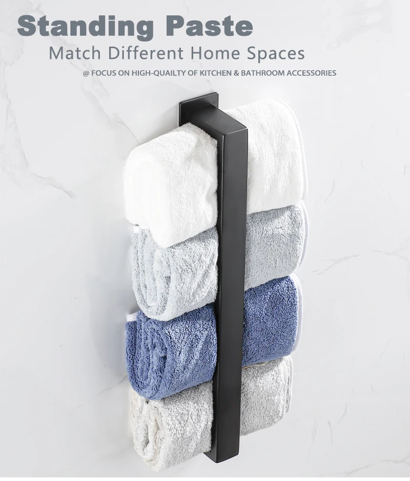 Toalha de aço inoxidável para banheiro, cremalheira de parede, sem broca, cabide preto, prateleira de chuveiro, cozinha rack, auto-adesivo