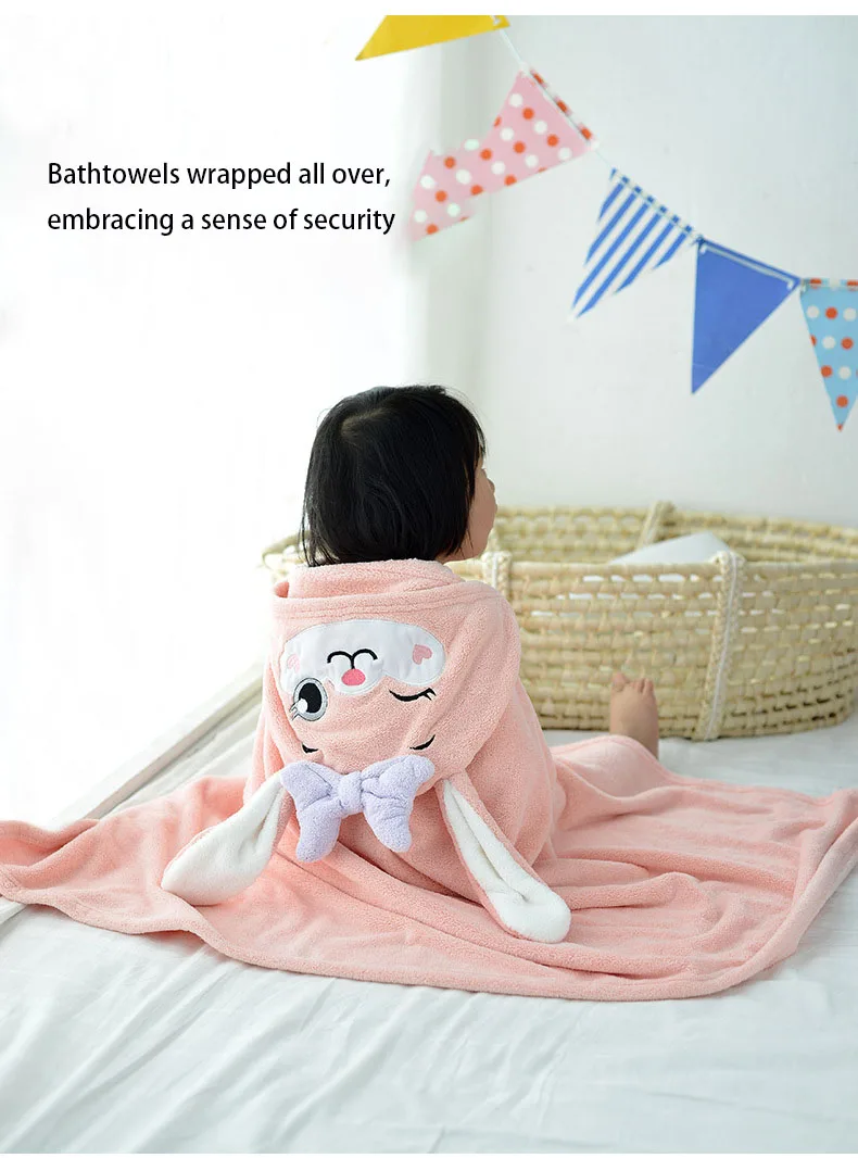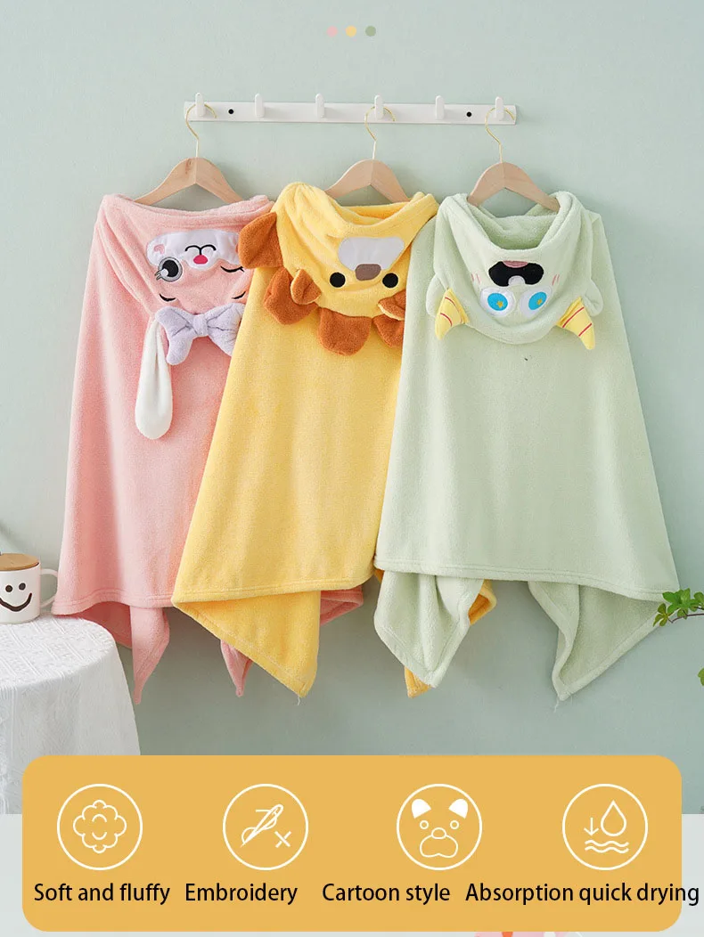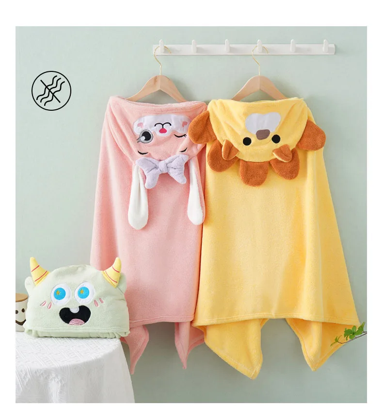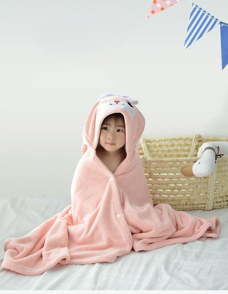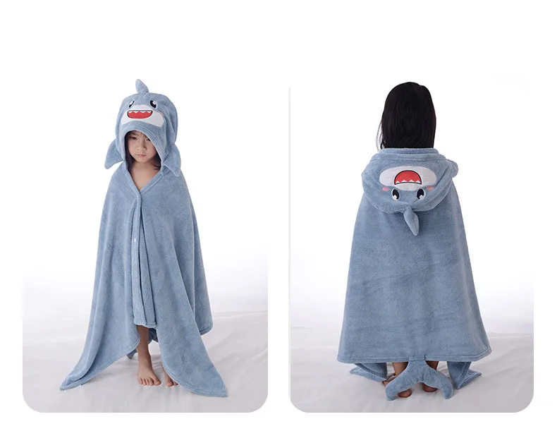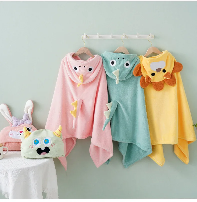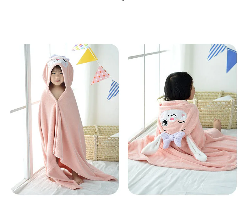 Toalha de banho com capuz coral para crianças, manto dos desenhos animados, roupão infantil, poncho para meninos e meninas