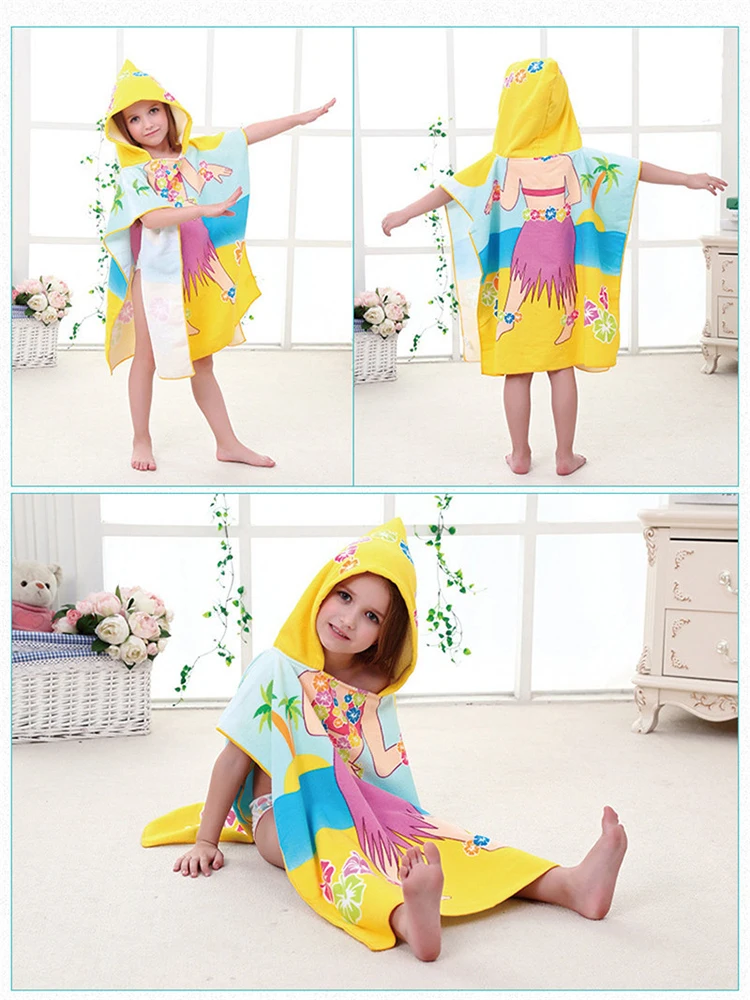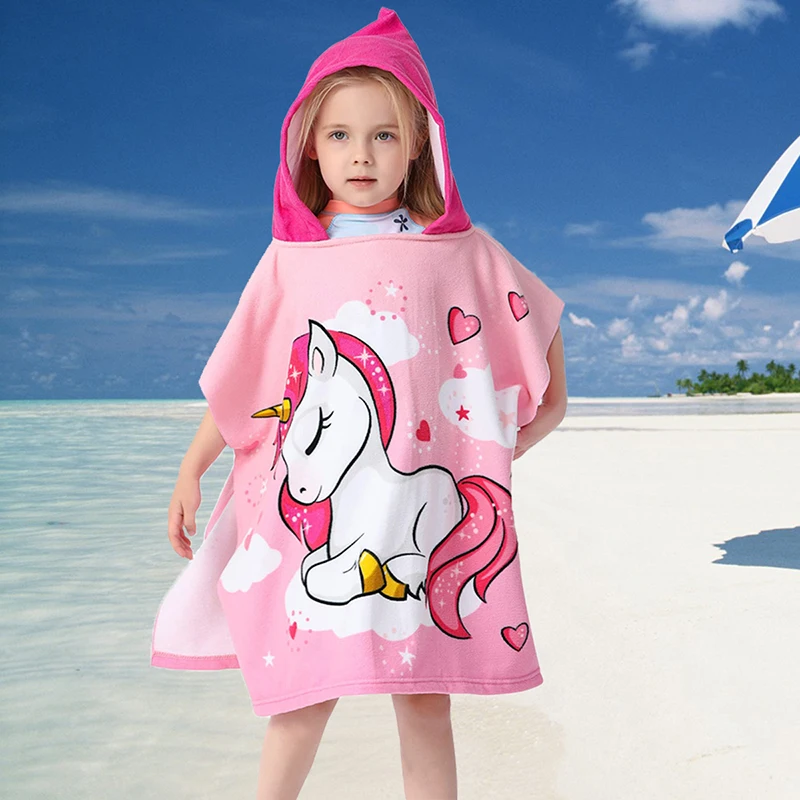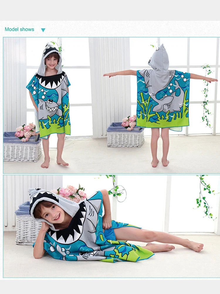 Toalha de banho com capuz Quick Dry para crianças, roupão Quick Dry, toalhas de poncho para desenhos infantis, coberturas de microfibra, 80-130cm