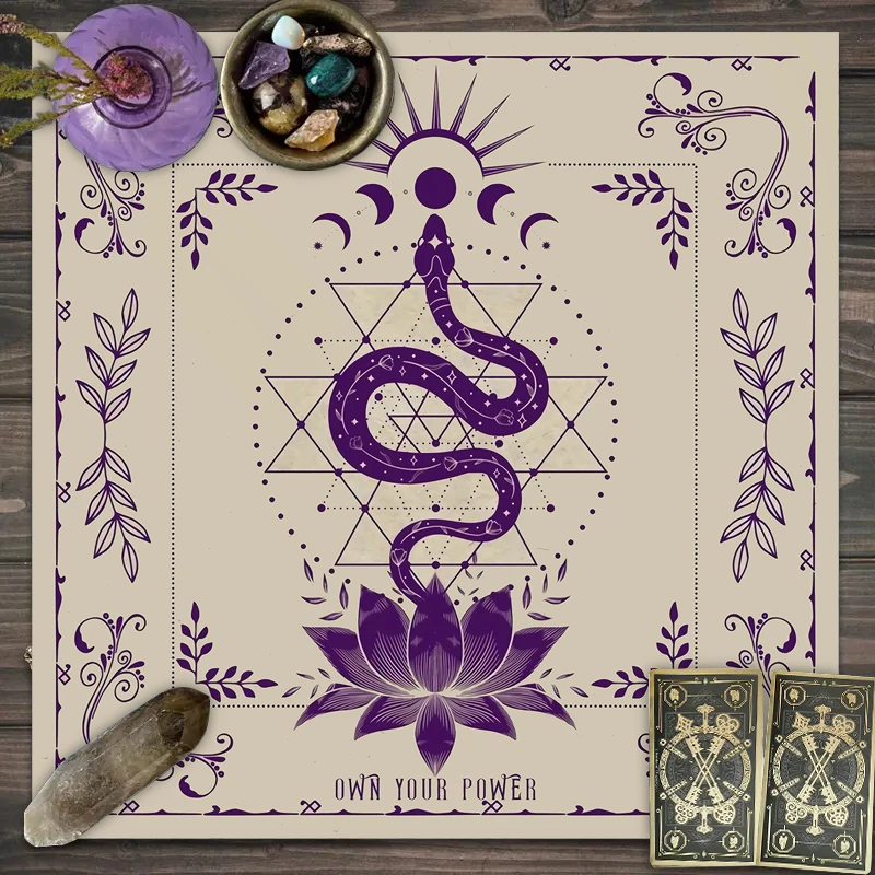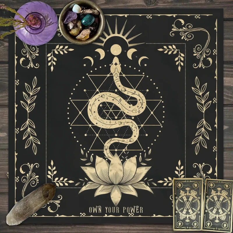 Toalha De Mesa De Tarô Com Seu Poder, Em Forma De Serpente, Estampa Floral e Vegetal, Toalha De Mesa Astrologia, Decoração De Altar, 1Pc