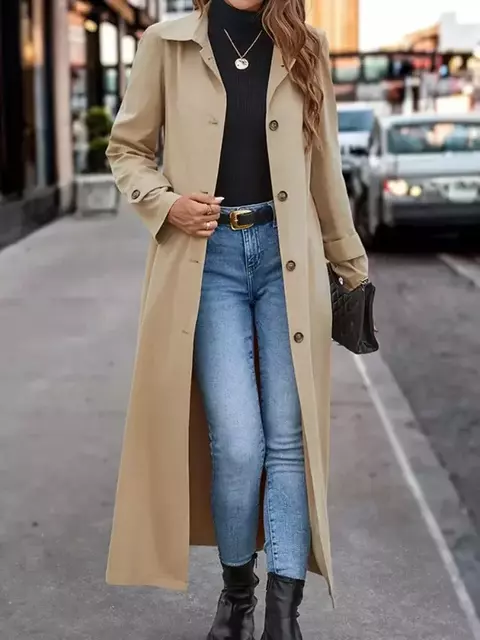 - > Trench coat de Natal para mulheres, casaco de manga comprida com botões, lapela solta, roupas ao ar livre, moda, outono e inverno, 2024