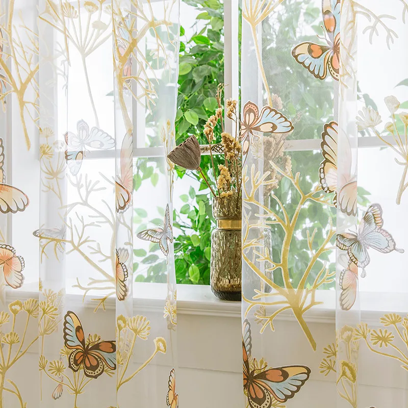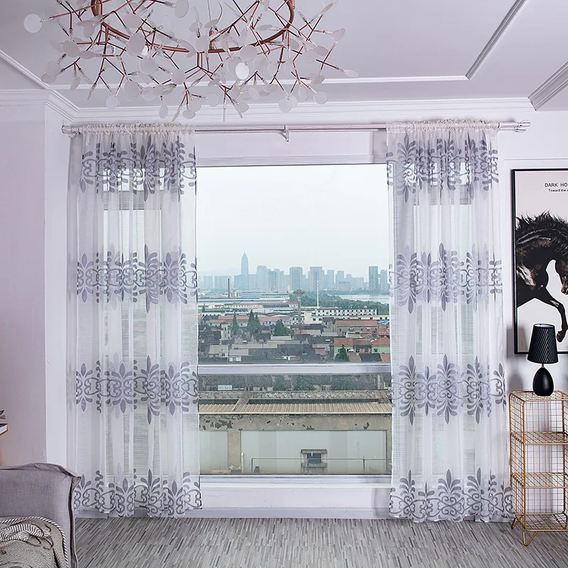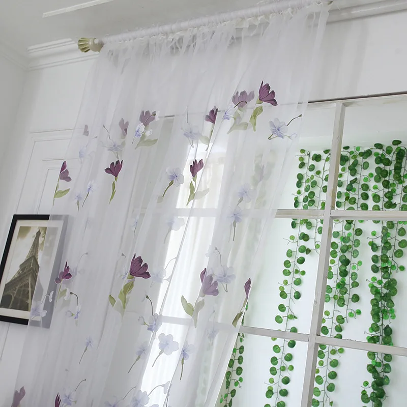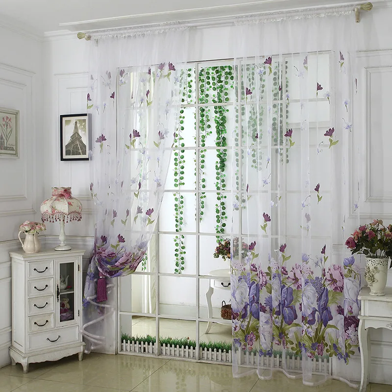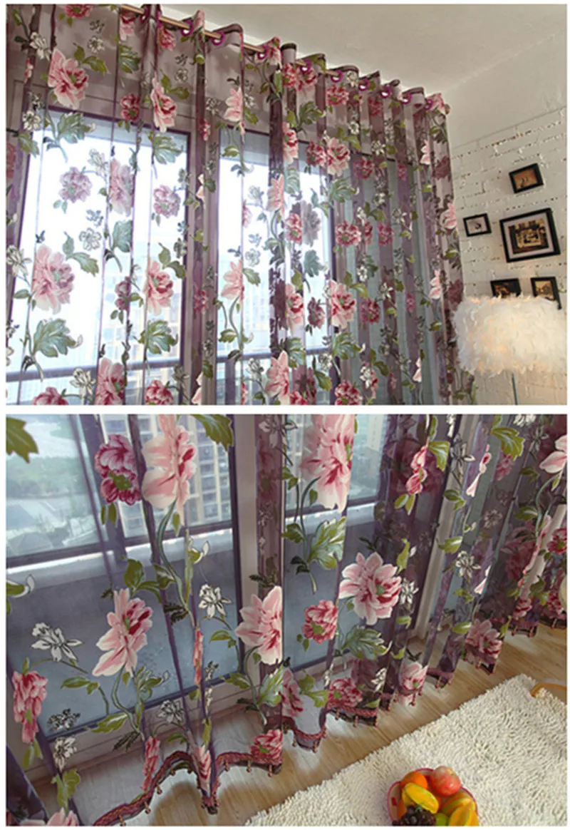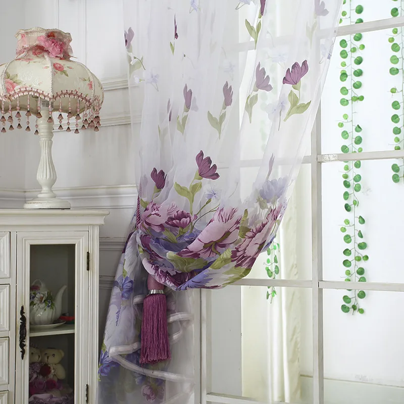 Roxo Floral Tulle Em Sheer Cortinas Para Sala de estar O Quarto Cozinha Sombra Janela Tratamento Cortina Persianas Painel