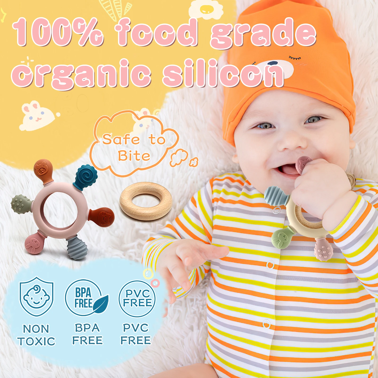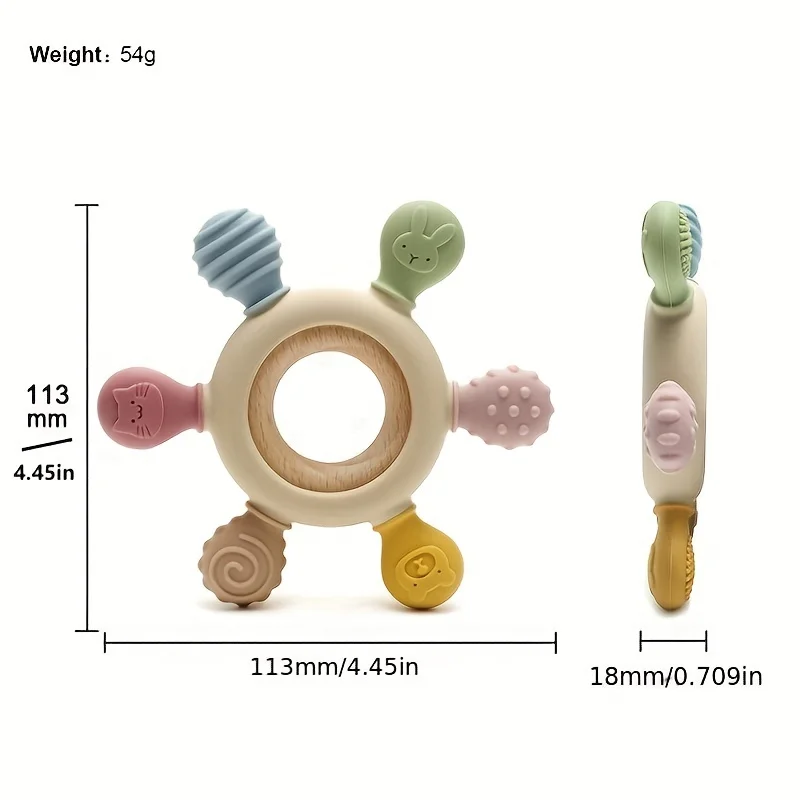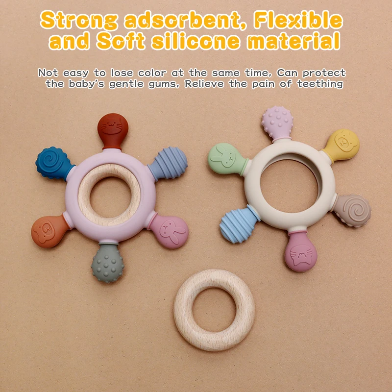- > TYRY.HU-Mordedores De Silicone Com Leme De Madeira Para Bebês, Brinquedos De Dentição, Ajuda Com Gomas De Dentição, 1Pc