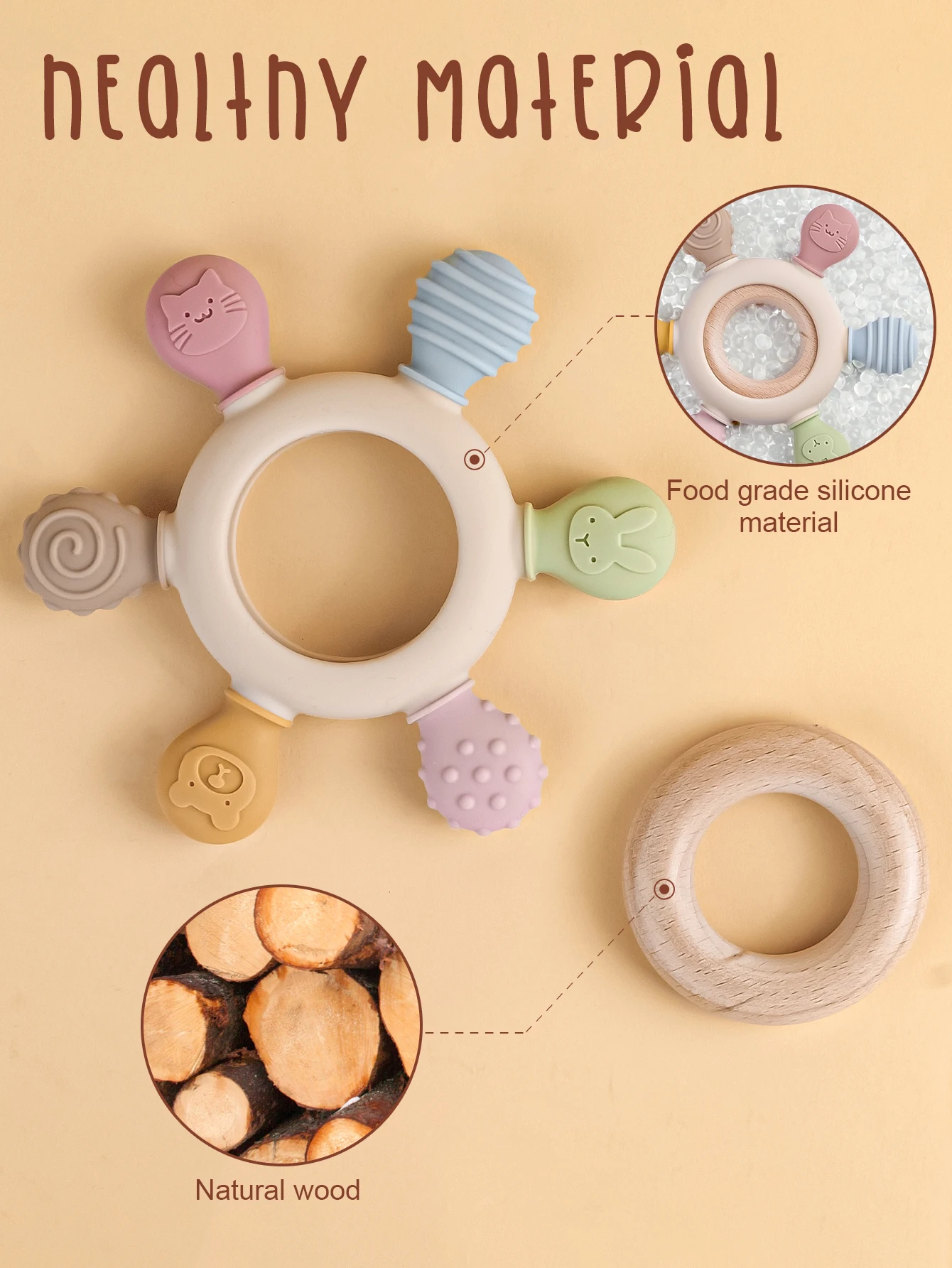 TYRY.HU-Mordedores De Silicone Com Leme De Madeira Para Bebês, Brinquedos De Dentição, Ajuda Com Gomas De Dentição, 1Pc