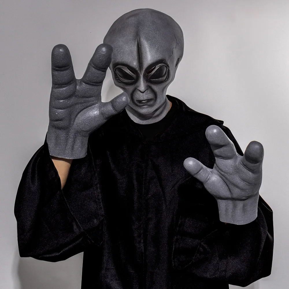 UFO Alien Cosplay Máscara e Luvas, 51 Área, Organismo Extraterrestre, Caveira Monstro, Capacete de Látex, Festa de Halloween, Fantasia