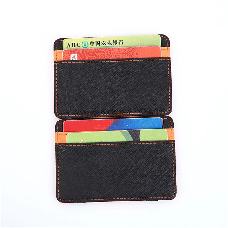 - > Ultra fino couro do plutônio das mulheres dos homens carteiras mágicas mini pequenas bolsas de moedas portátil curto negócio titular do cartão de crédito saco de embreagem caso