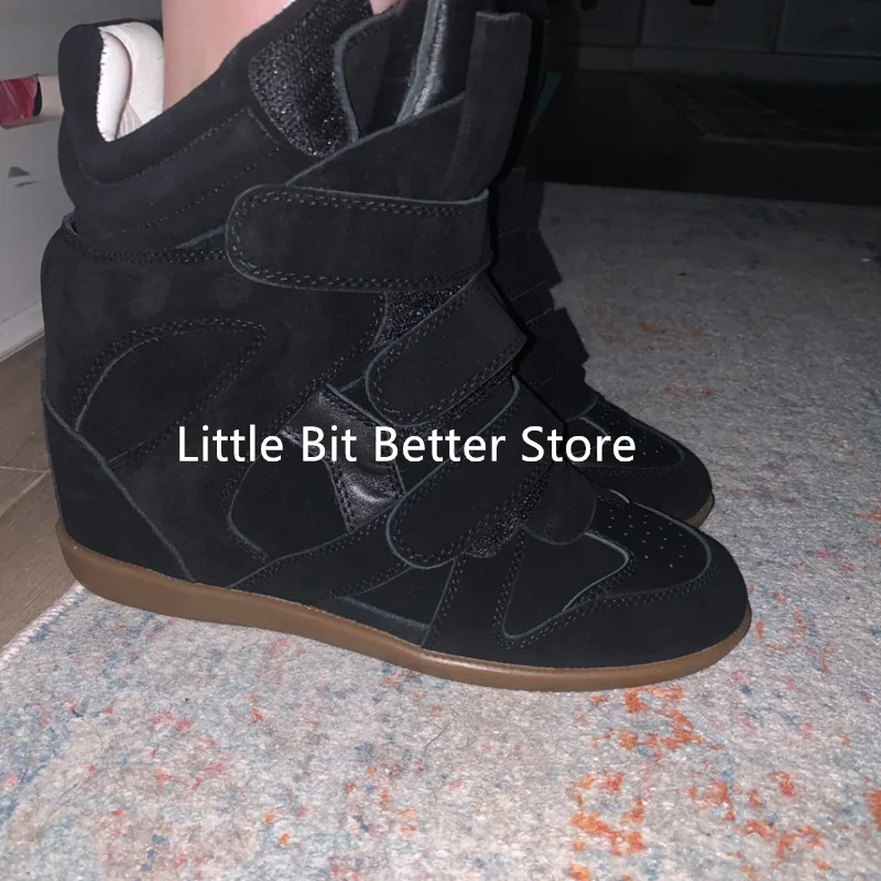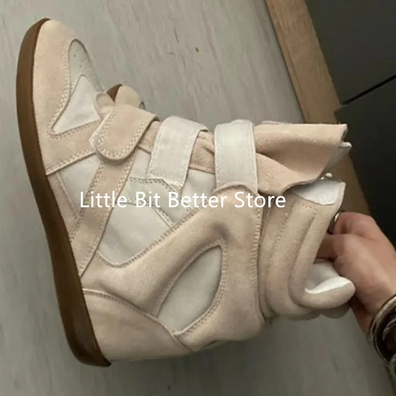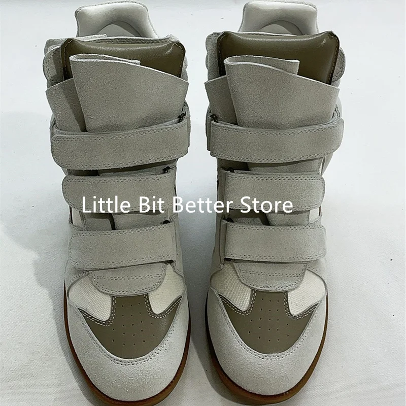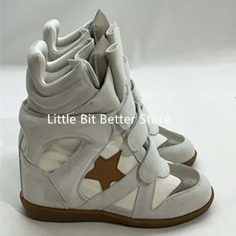 Um couro genuíno sapatos casuais das mulheres 2026 verão respirável oco escondido cunhas tênis gancho loop formadores alta superior