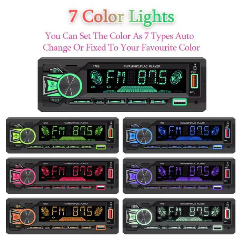 - > Universal 1 DIN Car MP3 Player B-tooth WIRELESS, Rádio FM, Entrada USB/TF/AUX, Carregador Rápido, Display de Tempo, Estéreo Multimídia para A