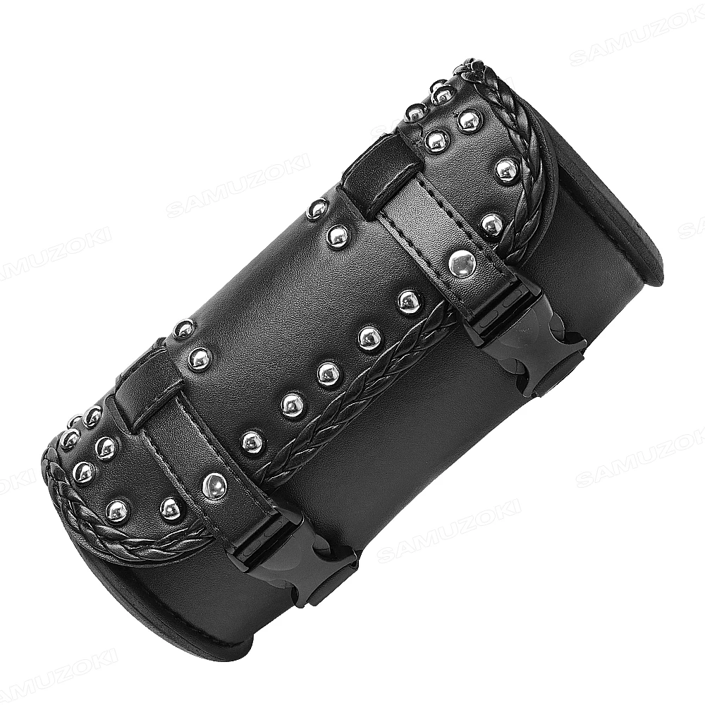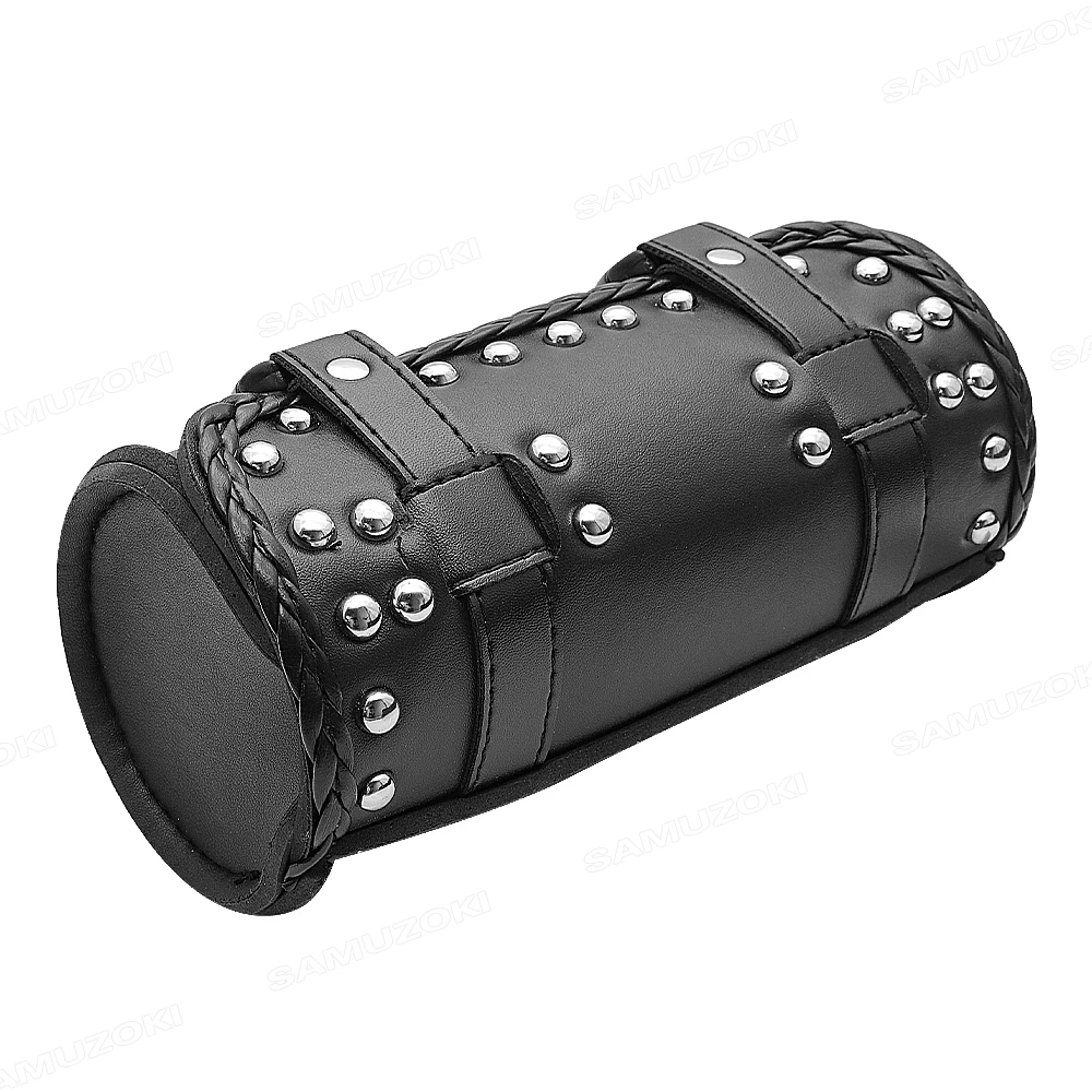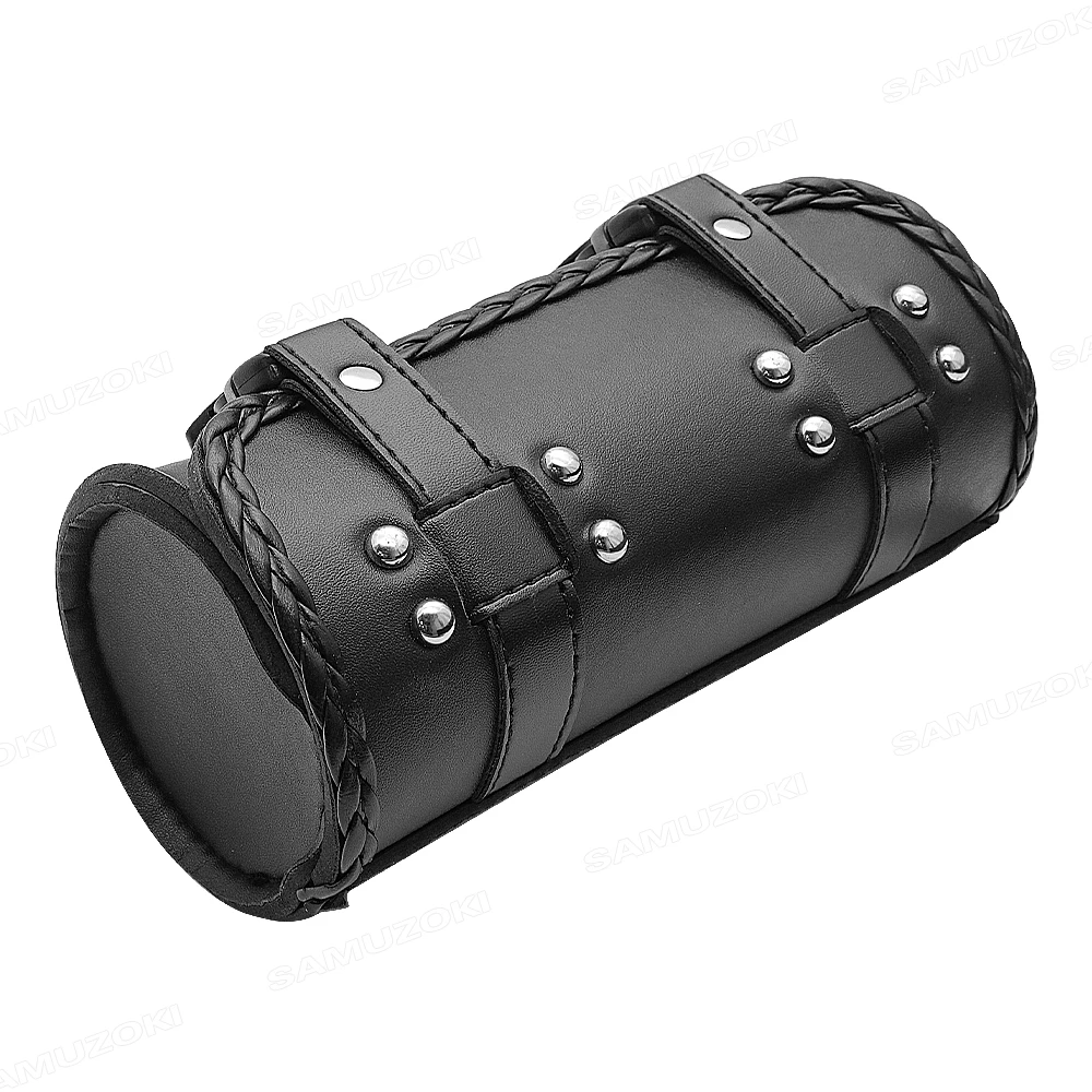 Universal saco de ferramentas da motocicleta garfo dianteiro guiador alforje rolo barril corrida cauda barril armazenamento para harley chopper bobber