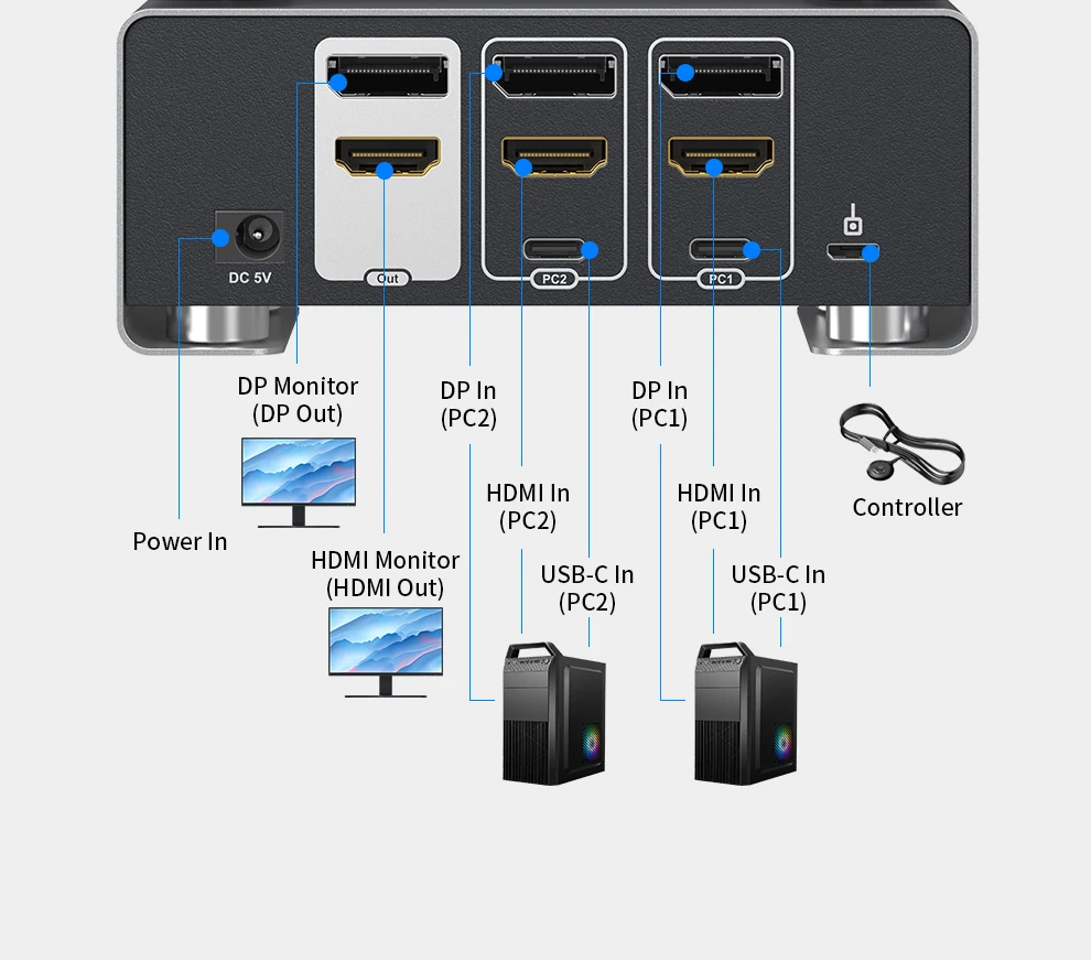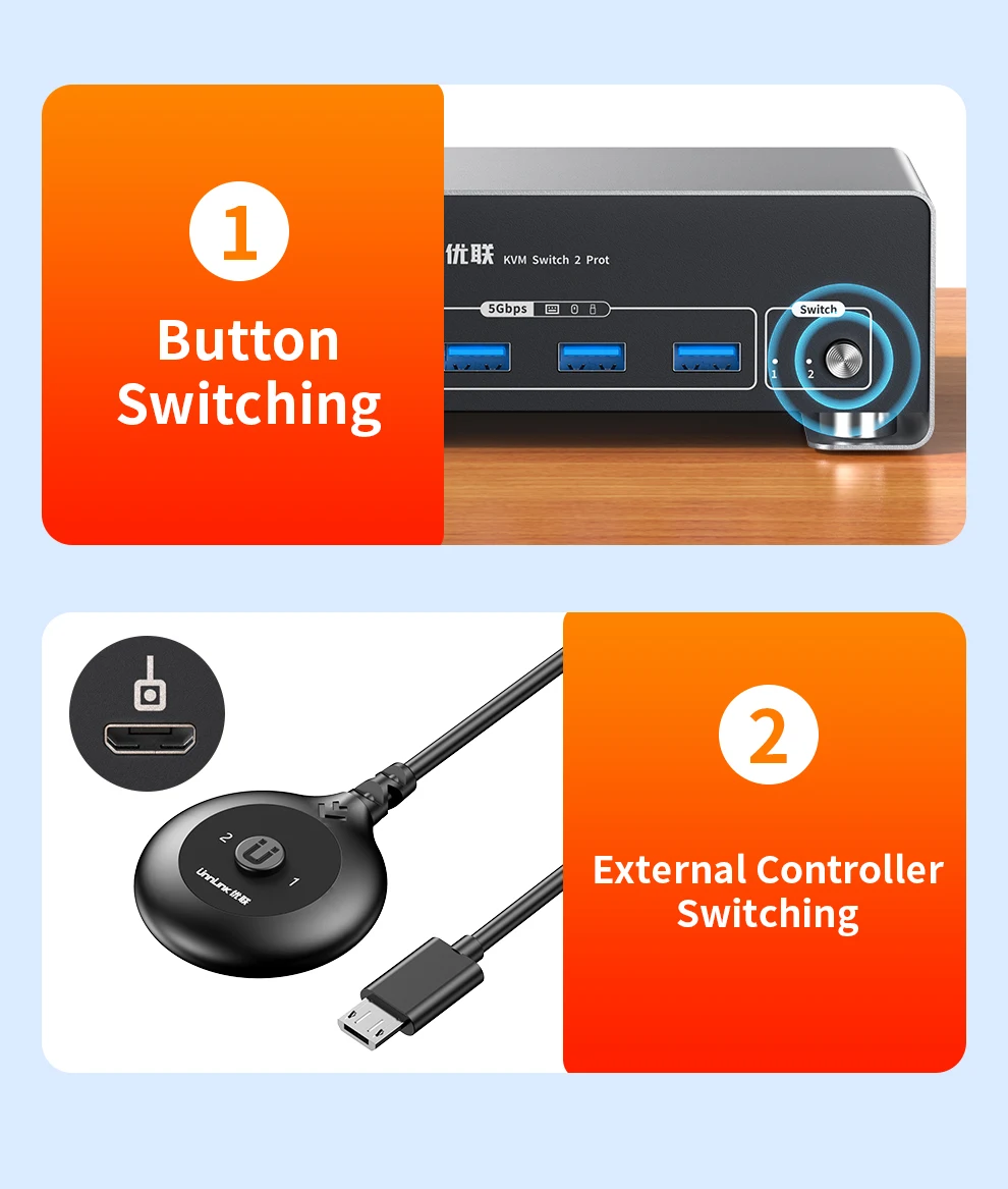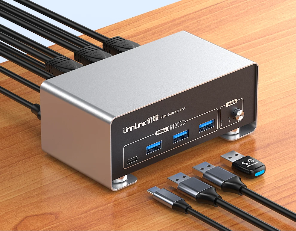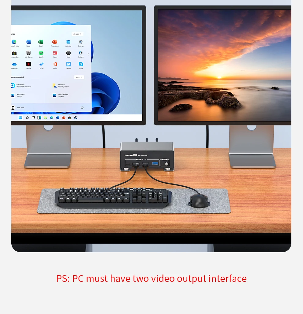 - > Unnlink 4K 240Hz HDMI + DP Dual Monitor KVM Switch 2 Monitor 2 Computador 8K 60Hz com USB 3.0 para Win/Mac PC Share Mouse Teclado