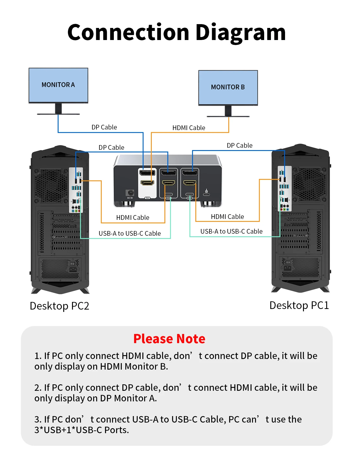 2.Monitore A e B: exiba as mesmas imagens do PC2.