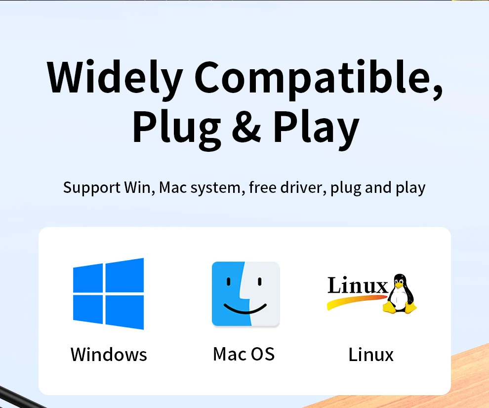 Amplamente compatível, plug & play