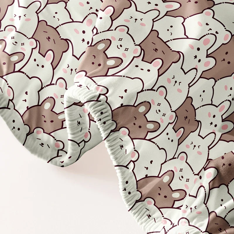 Urso de pelúcia bonito impresso fosco cabido folha para quarto, tampa de cama, cama, 1 desenho animado, excluindo fronhas, bonito