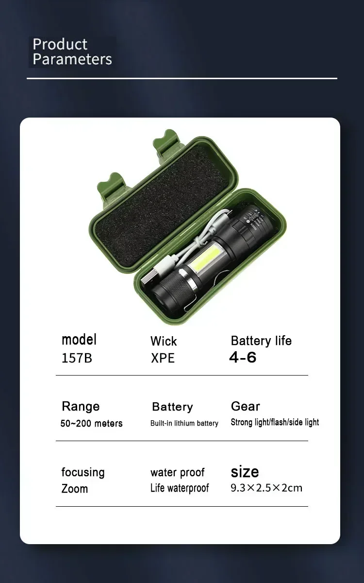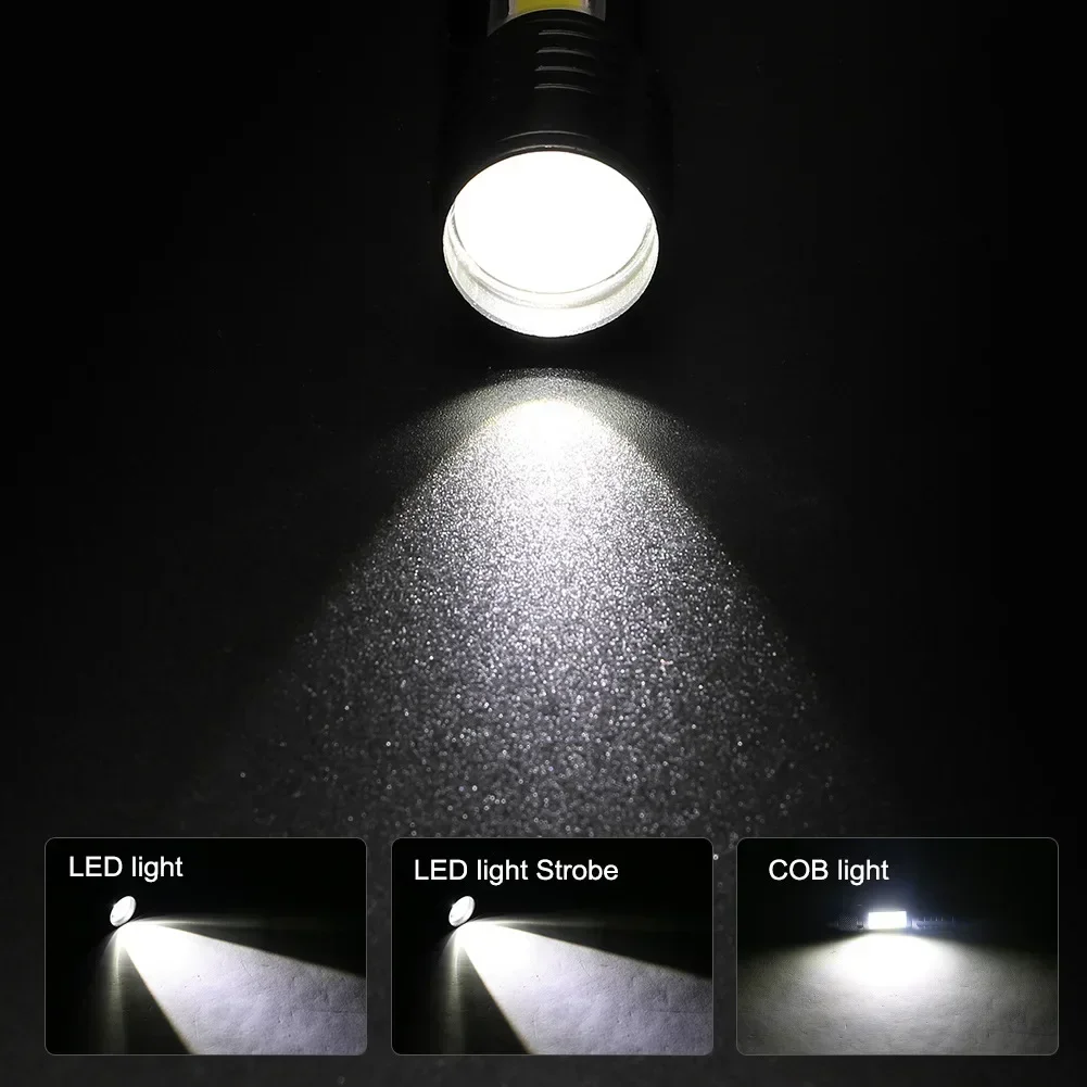 Usb recarregável mini lanternas 3 modo lanterna cob + xpe portátil bateria embutida zoomable pequena tocha acampamento lâmpada de emergência