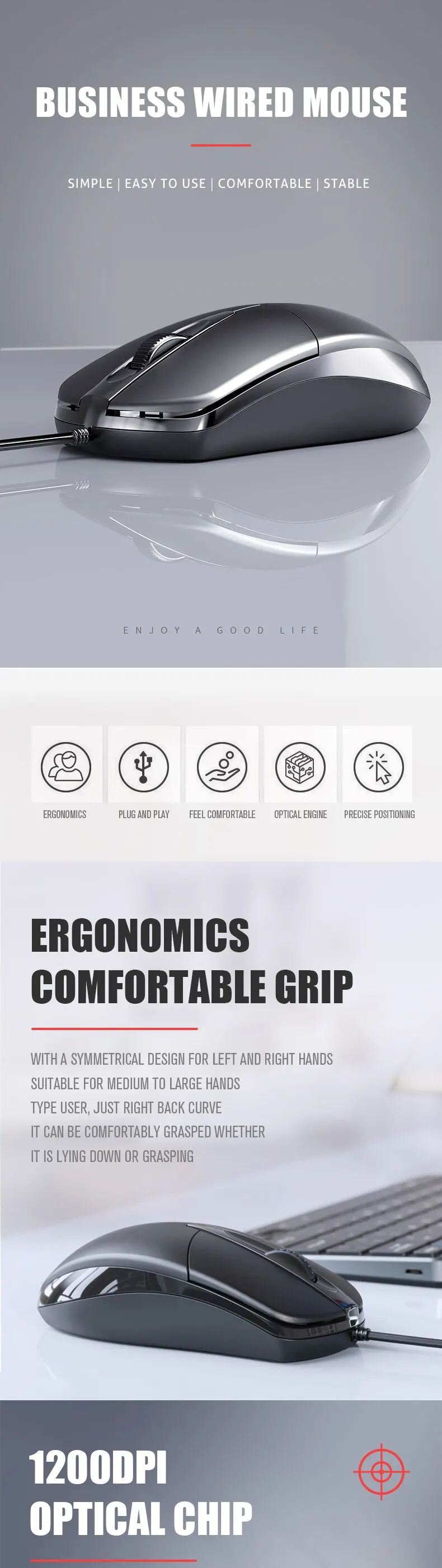- > USB Wired Computer Mouse Optical Mouse Gamer PC Laptop Notebook Mouse Computer Mouse para uso doméstico do escritório