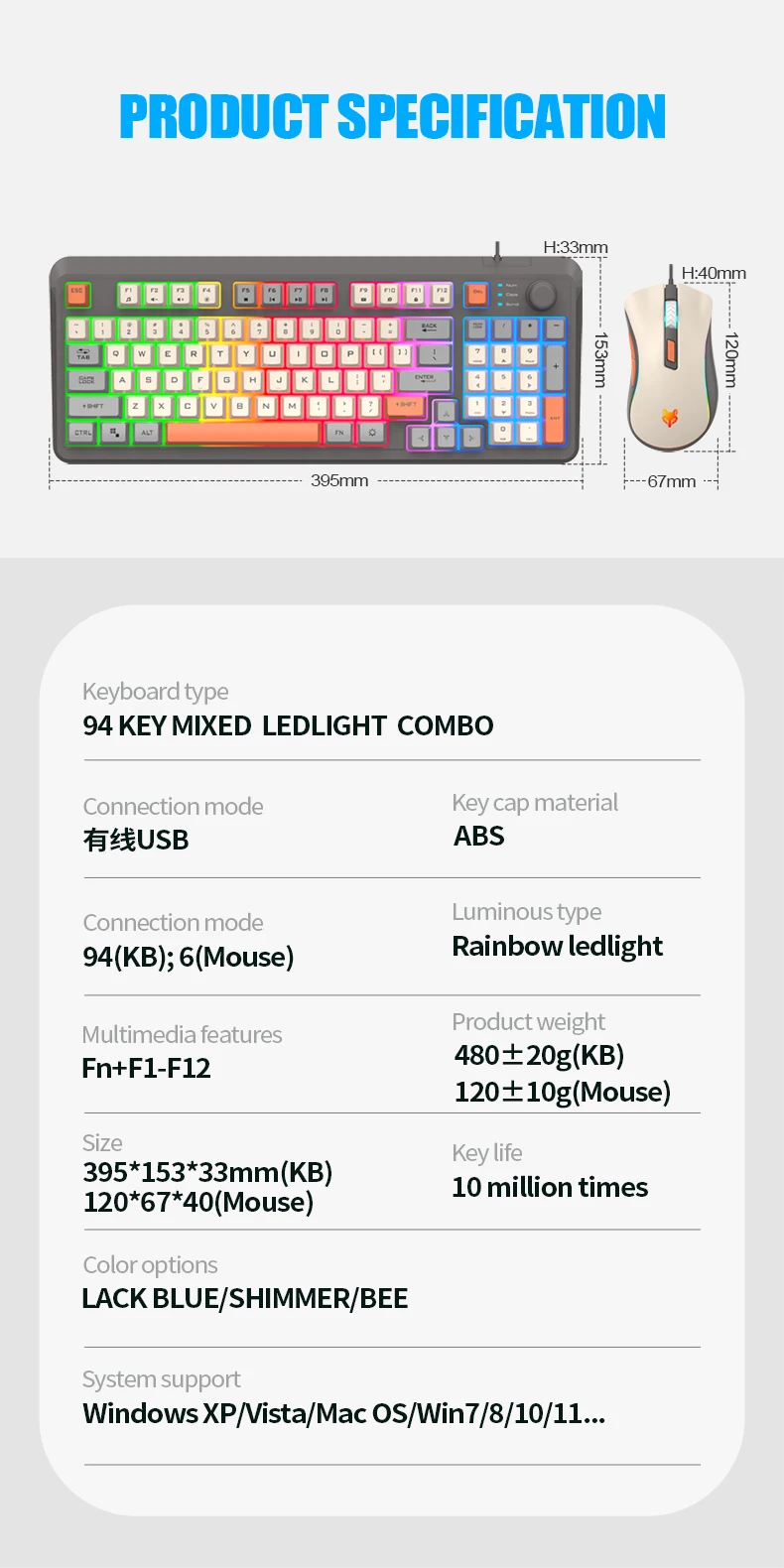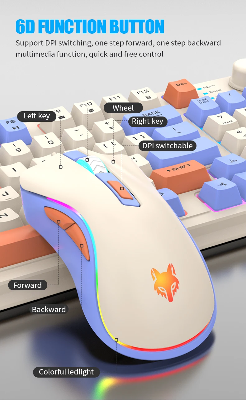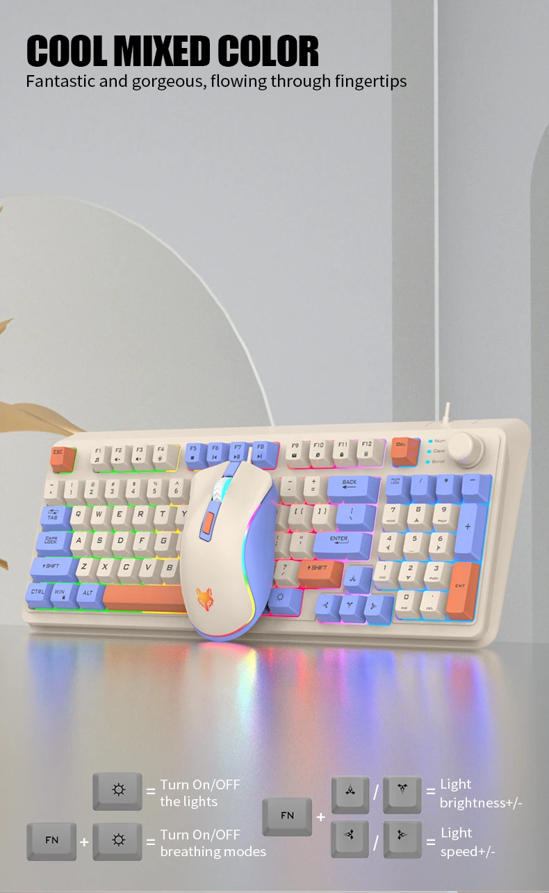 - > USB Wired Game Keyboard and Mouse Set, Iluminado, Desktop, Laptop, Casa, Escritório, Feminino, Masculino, K820