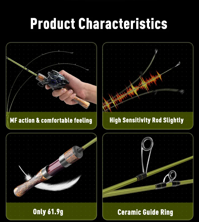 Vara de pesca giratória Kingdom 61.9g Varas de carbono ultraleves 2 seções MF Action UL L power 3 seções Vara de viagem de fundição