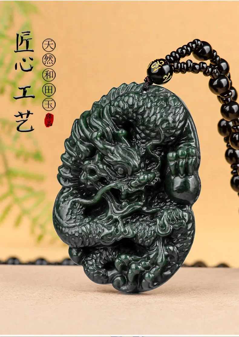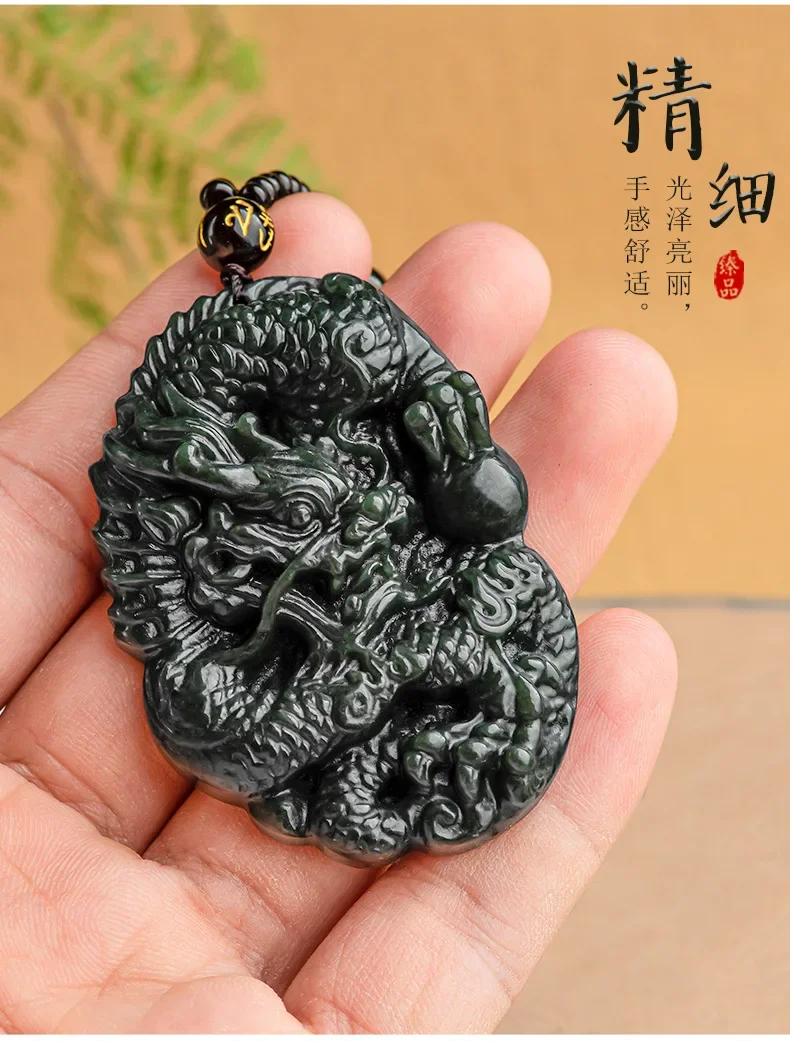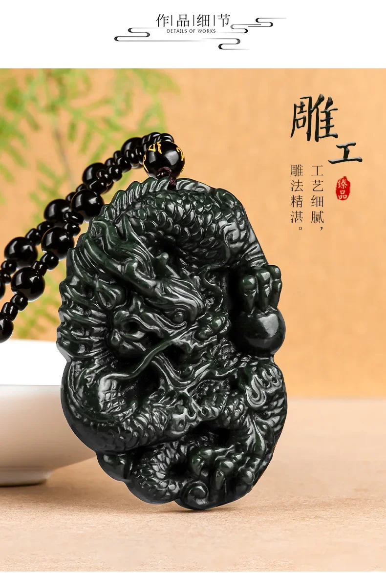 - > Velho hotan jade ciano pingente jadeite dragão rei marca zodíaco colar dominador masculino mão esculpida jóias presente high-end