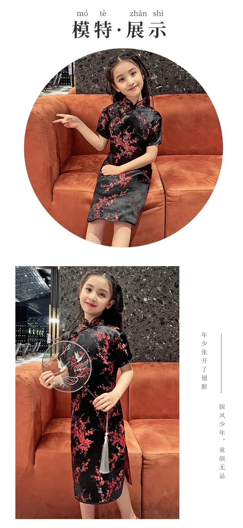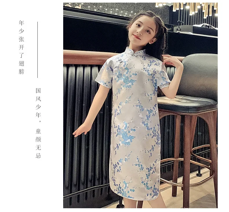 - > Verão crianças cheongsam moderno festa meninas vestidos moda menina vestido vestidos estilo chinês bebê qipao roupas de princesa