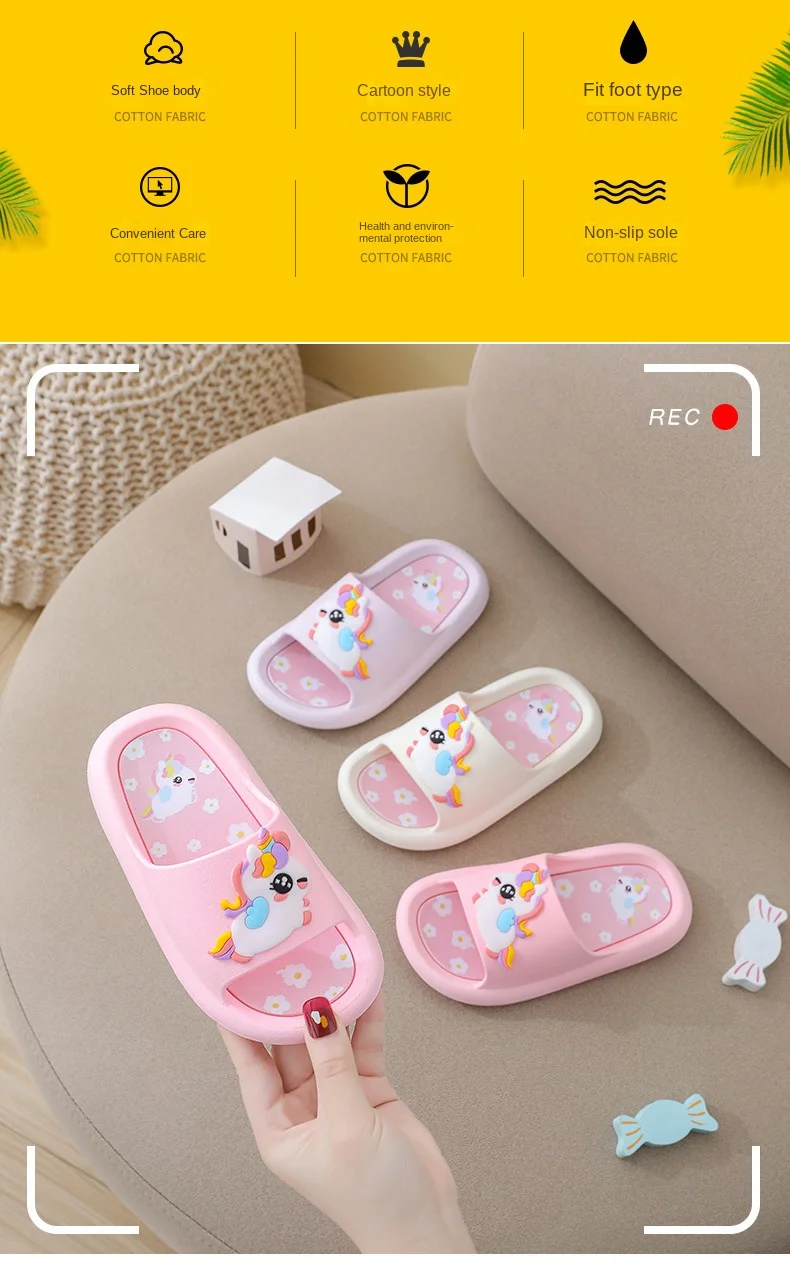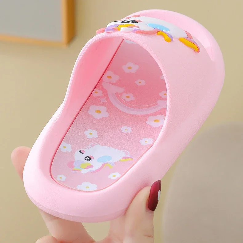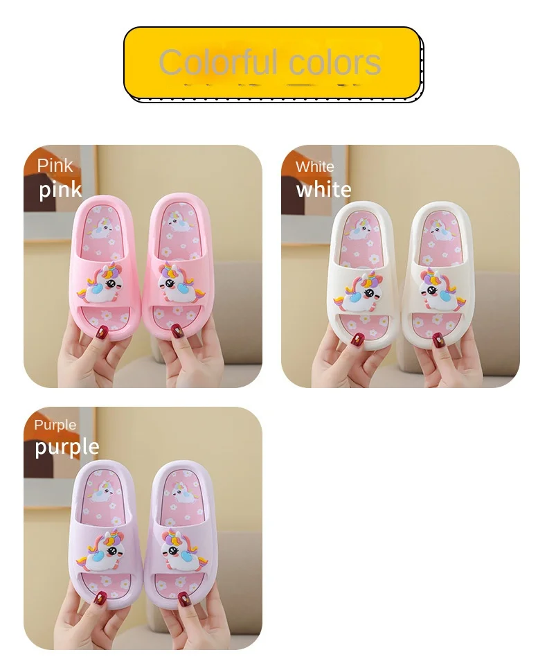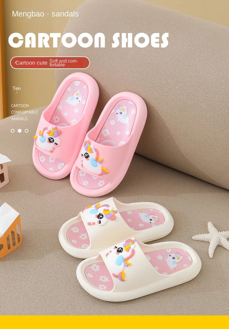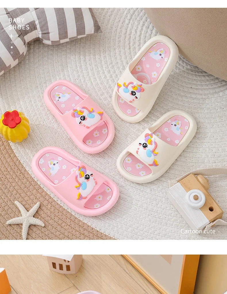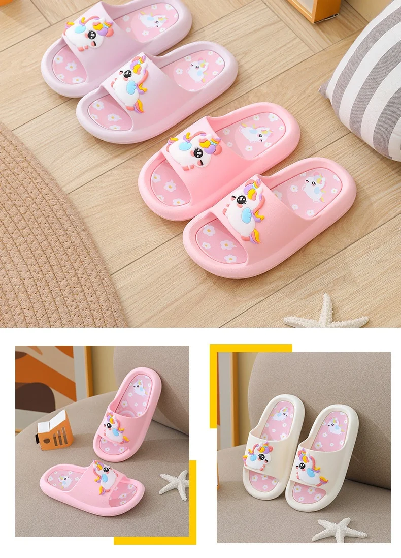 - > Verão dos desenhos animados chinelos das crianças menina unicórnio chinelo crianças bonito interior casa sapatos de banheiro menino dinossauro flip flops einhorn