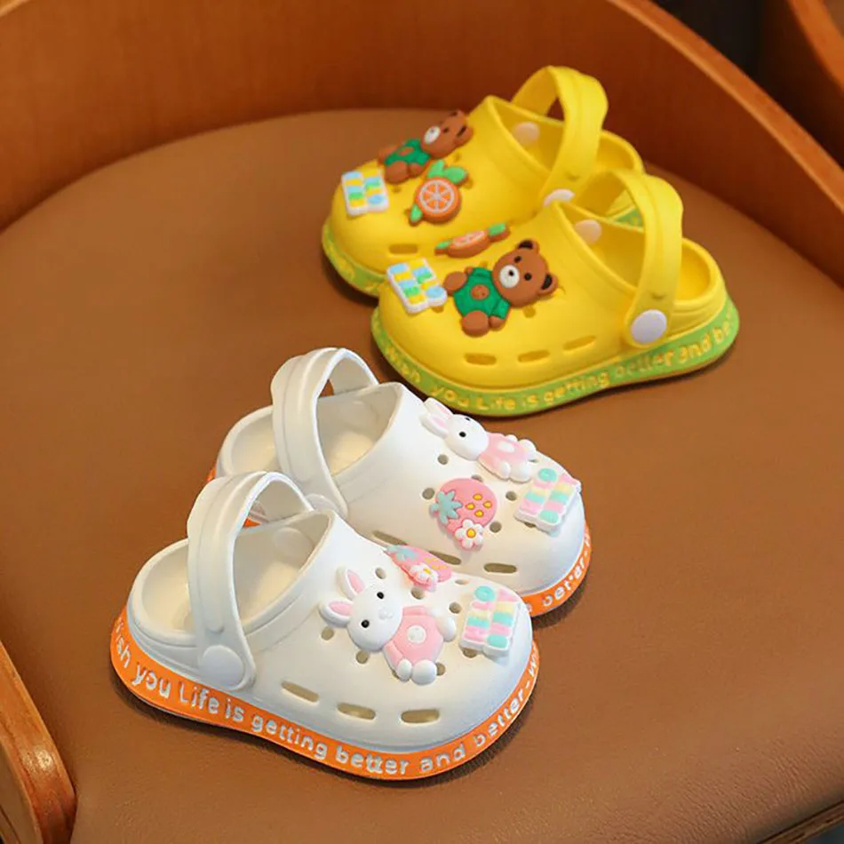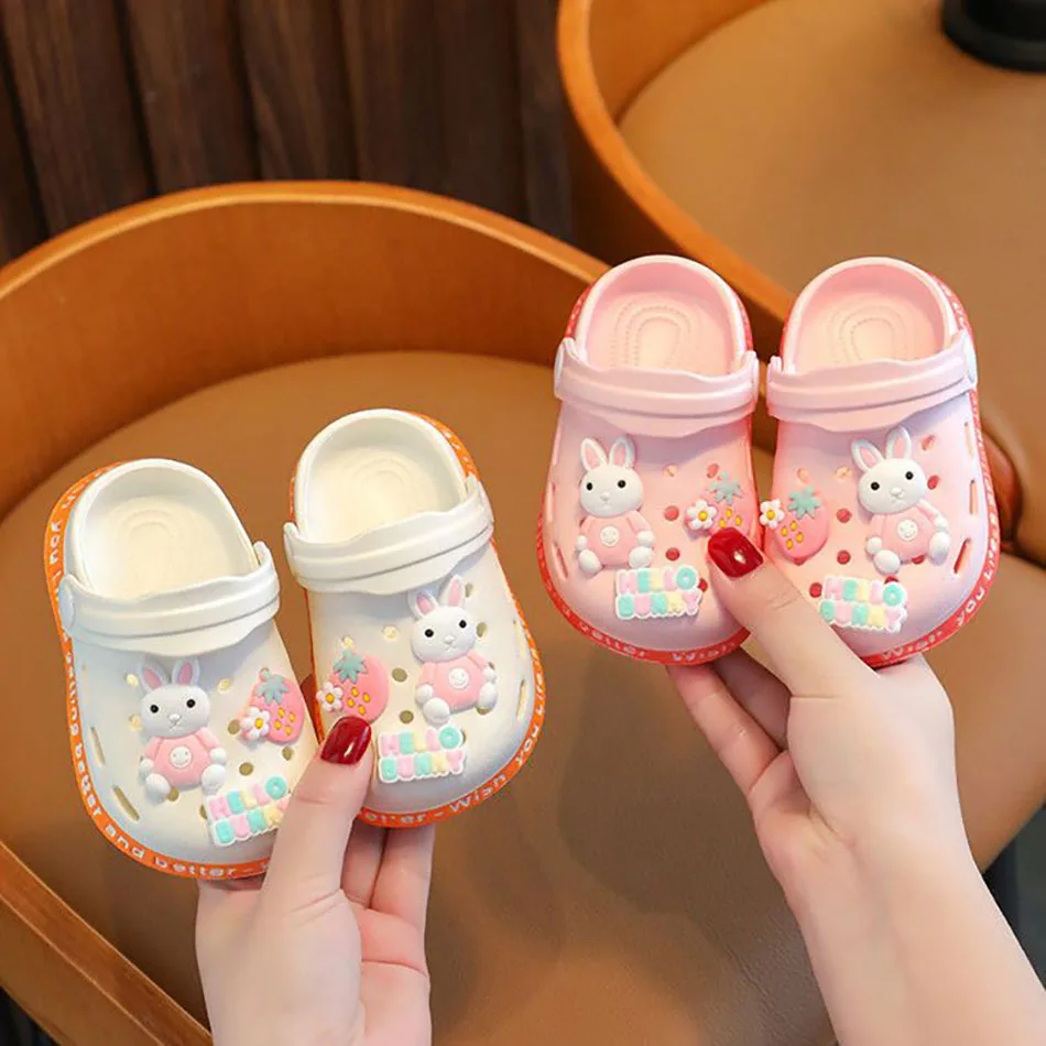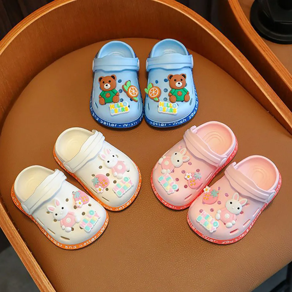 Verão dos desenhos animados coelho urso respirável crianças indoor tamancos sapatos com buracos antiderrapantes unisex chinelos de sola macia crianças sandálias