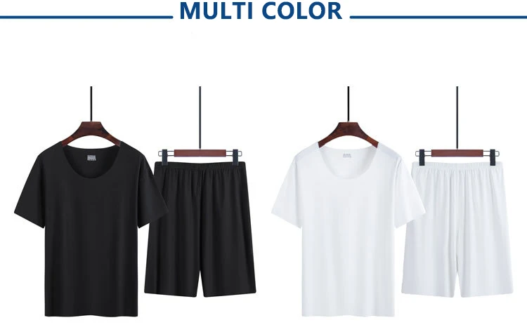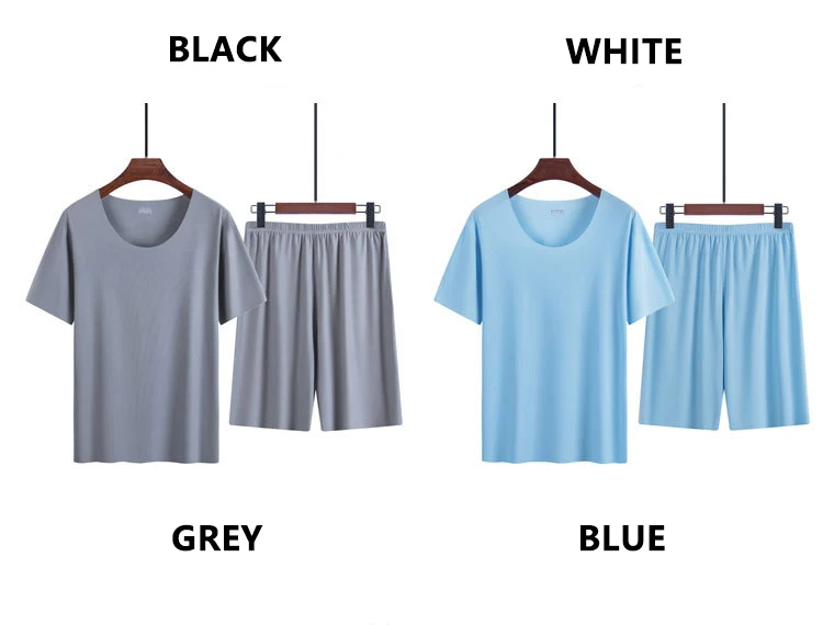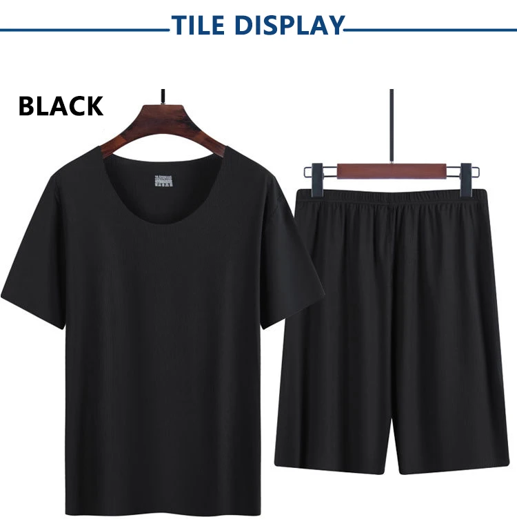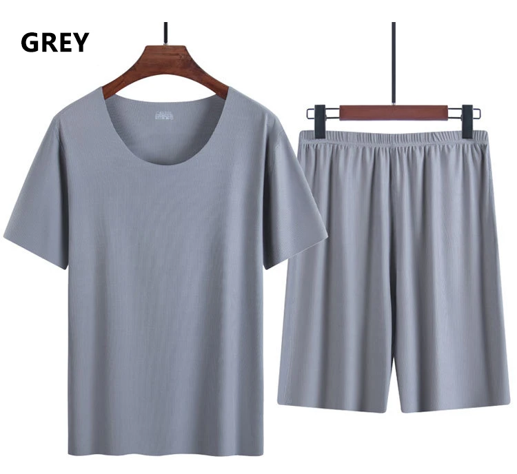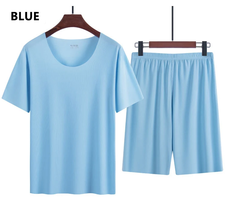 - > Verão pijamas masculinos terno fino gelo casa roupas traceless manga curta shorts em torno do pescoço casual roupas de verão