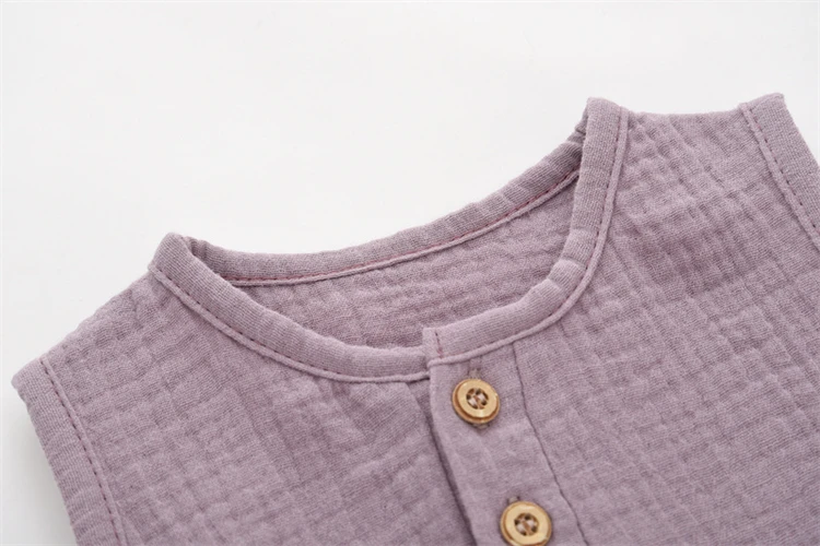 - > Verão sólido bebê recém-nascido 100% algodão linho bodysuits menino menina sem mangas macacão macio para a pele fino confortável