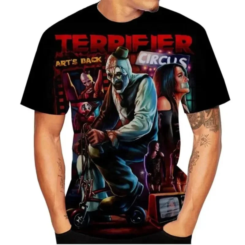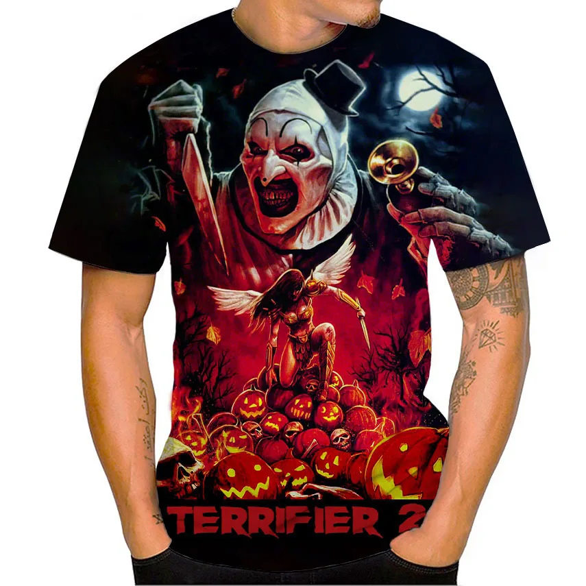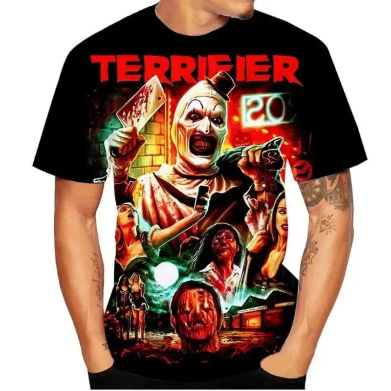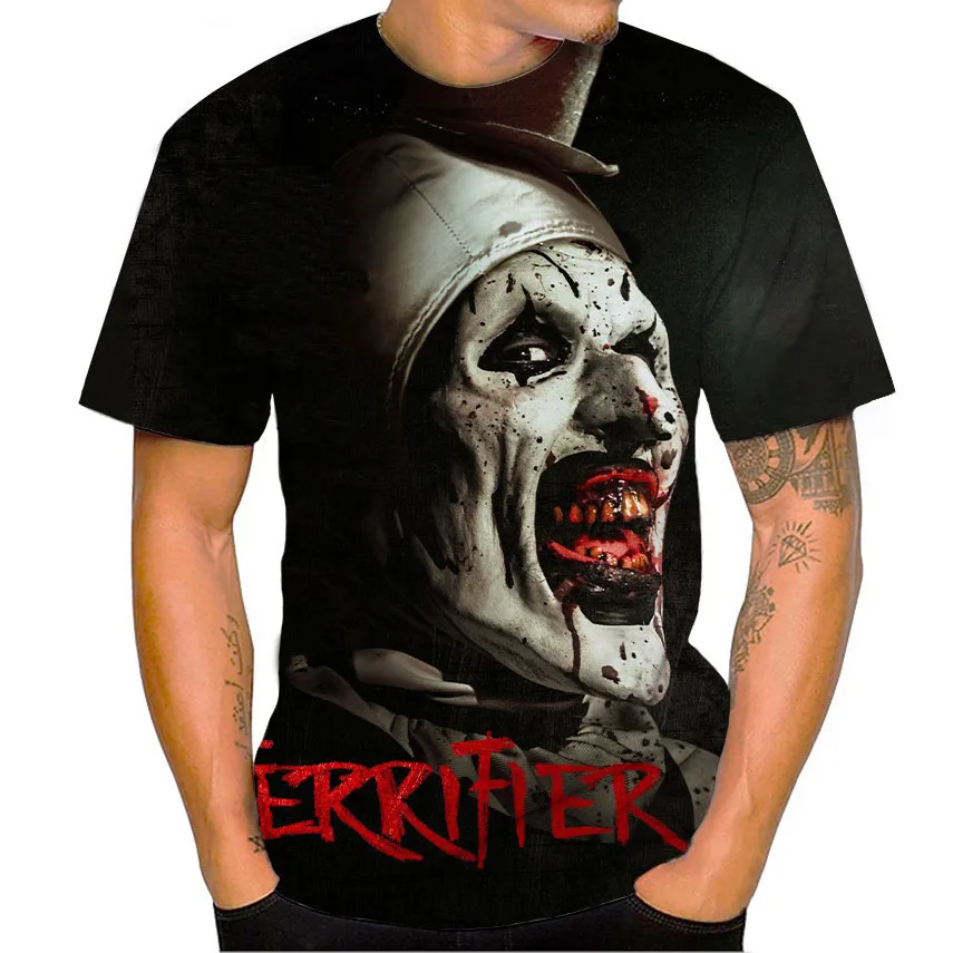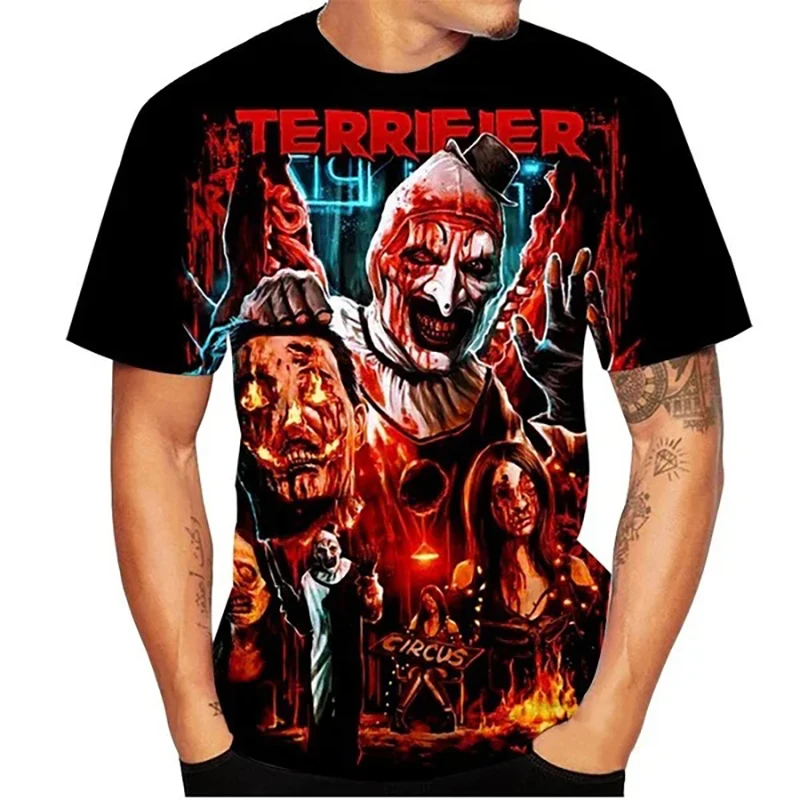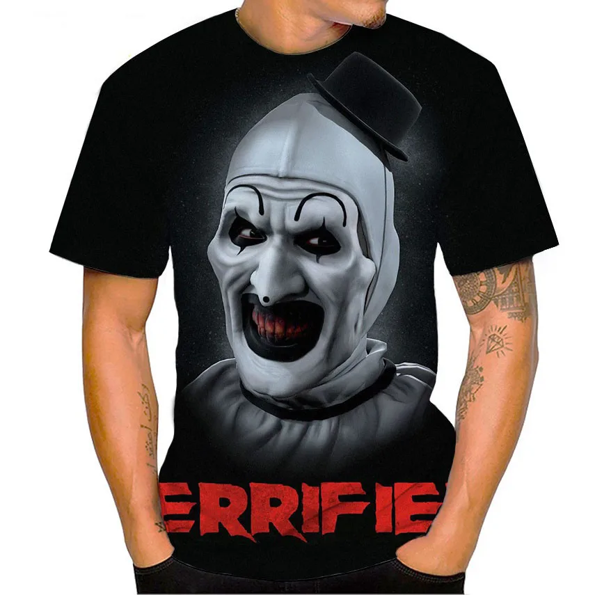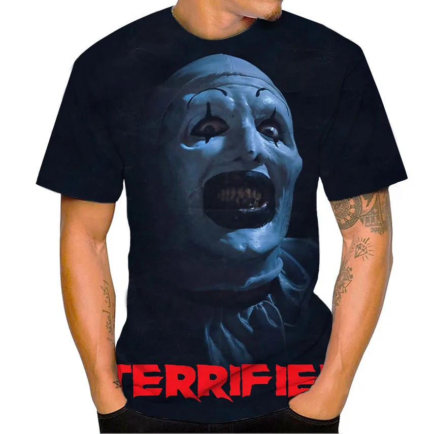 Verão terrifier filme de terror impressão 3d camisetas das mulheres dos homens moda casual oversized manga curta t camisa masculina camisetas topos roupas