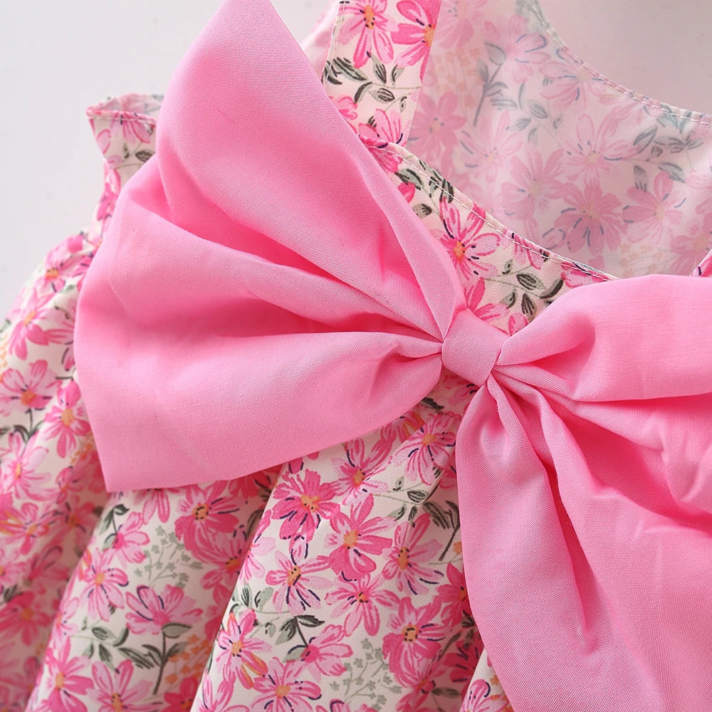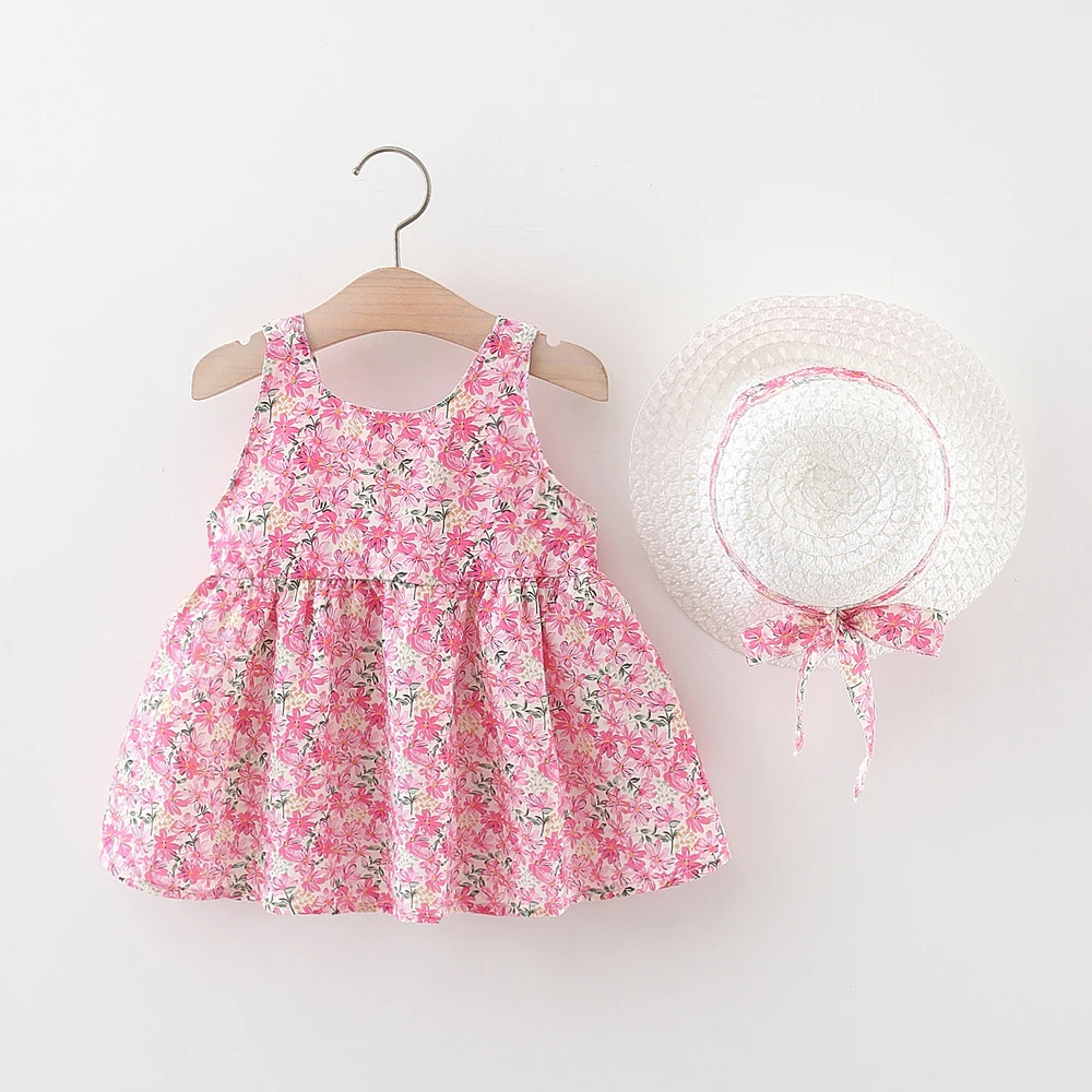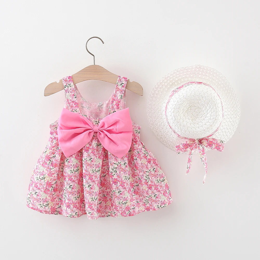 - > Vestido de bebê de 2 peças de verão + chapéu de sol com alça de laço floral vestido de menina macia e confortável roupas infantis