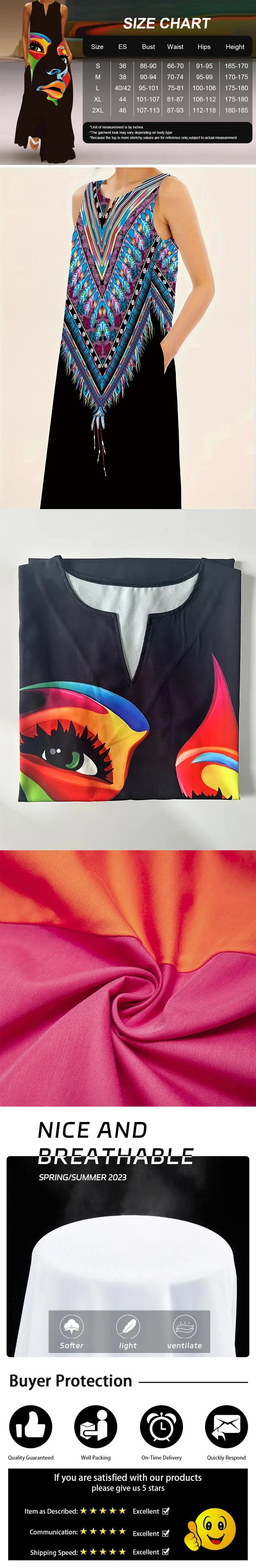 Vestido de noite sem mangas feminino, decote em v, vestido de bolso, estampa de colete casual, tamanho grande, elegante, uma peça, verão