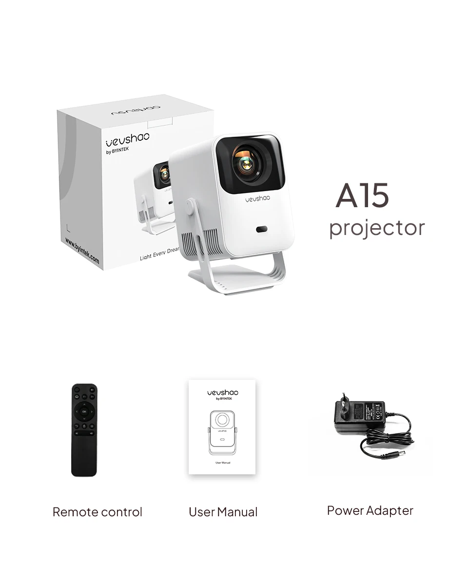 - > Vevshao A15 Projetor Inteligente Portátil Android 13 Projetor Dual WiFi Auto Keystone Focus Pocket Beamer Home Reunião Video Cinema