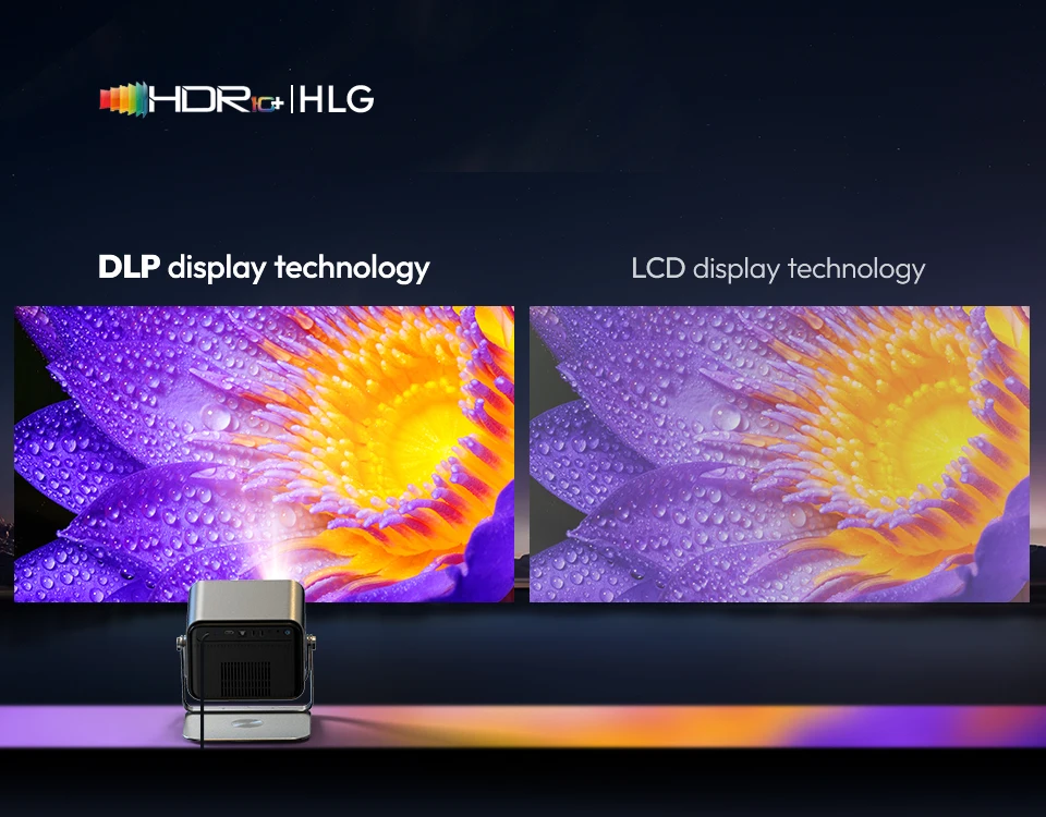 Experimente a verdadeira resolução Full HD 1920x1080 alimentada pelo chip DMD avançado de 0,45" da Texas Instruments (sem aumento artificial de 720p!), com impressionante decodificação HDR10+ e 4K H.265 que dá vida ao conteúdo Netflix e Disney+ em contraste de nível de teatro de tirar o fôlego - além de DLP-LINK 3D envolvente, pronto para seus aglomerados favoritos.