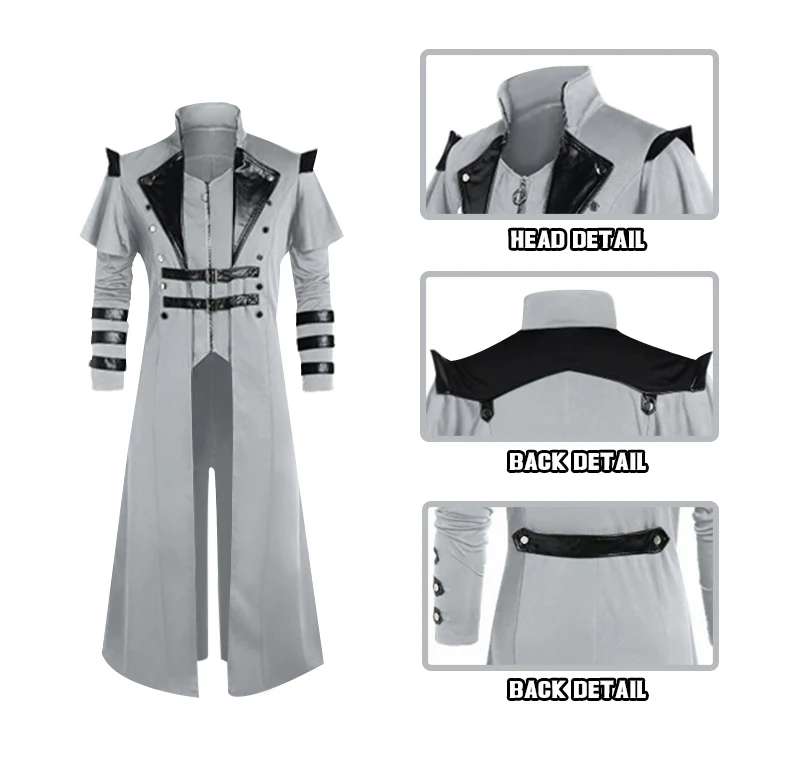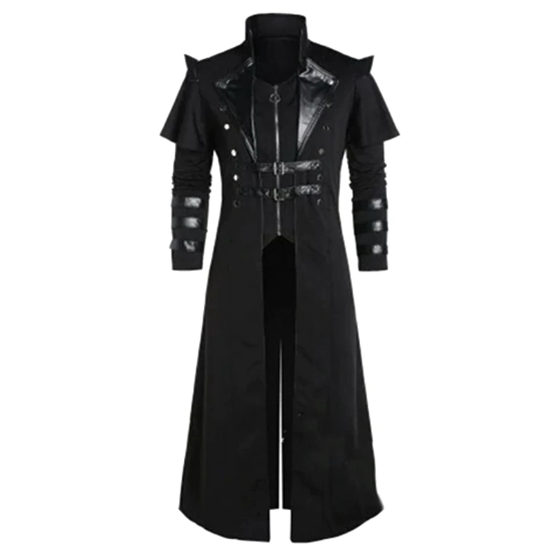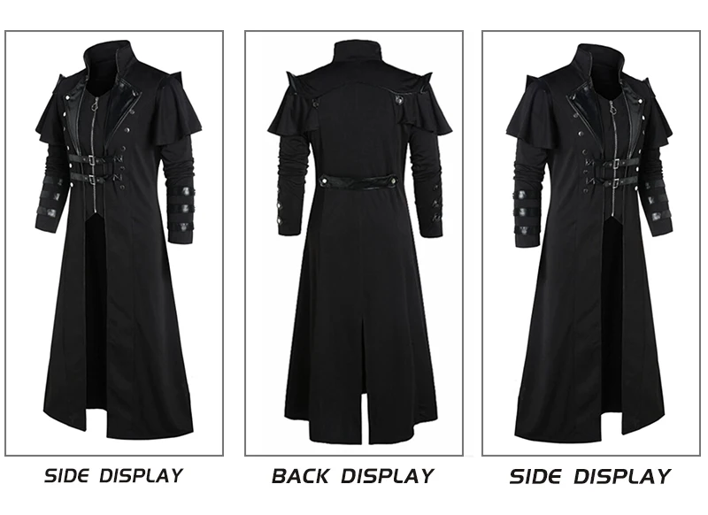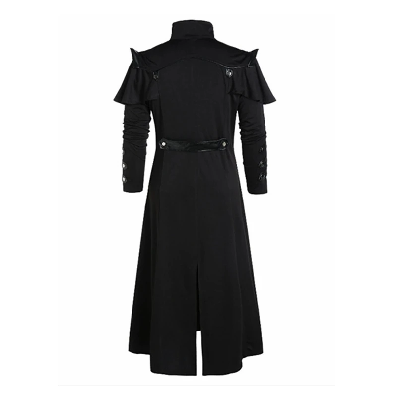 Vintage Halloween Medieval Steampunk Elves Pirate Costume Adult Men Black Long Split Jacket Gothic Armor Leather Coats