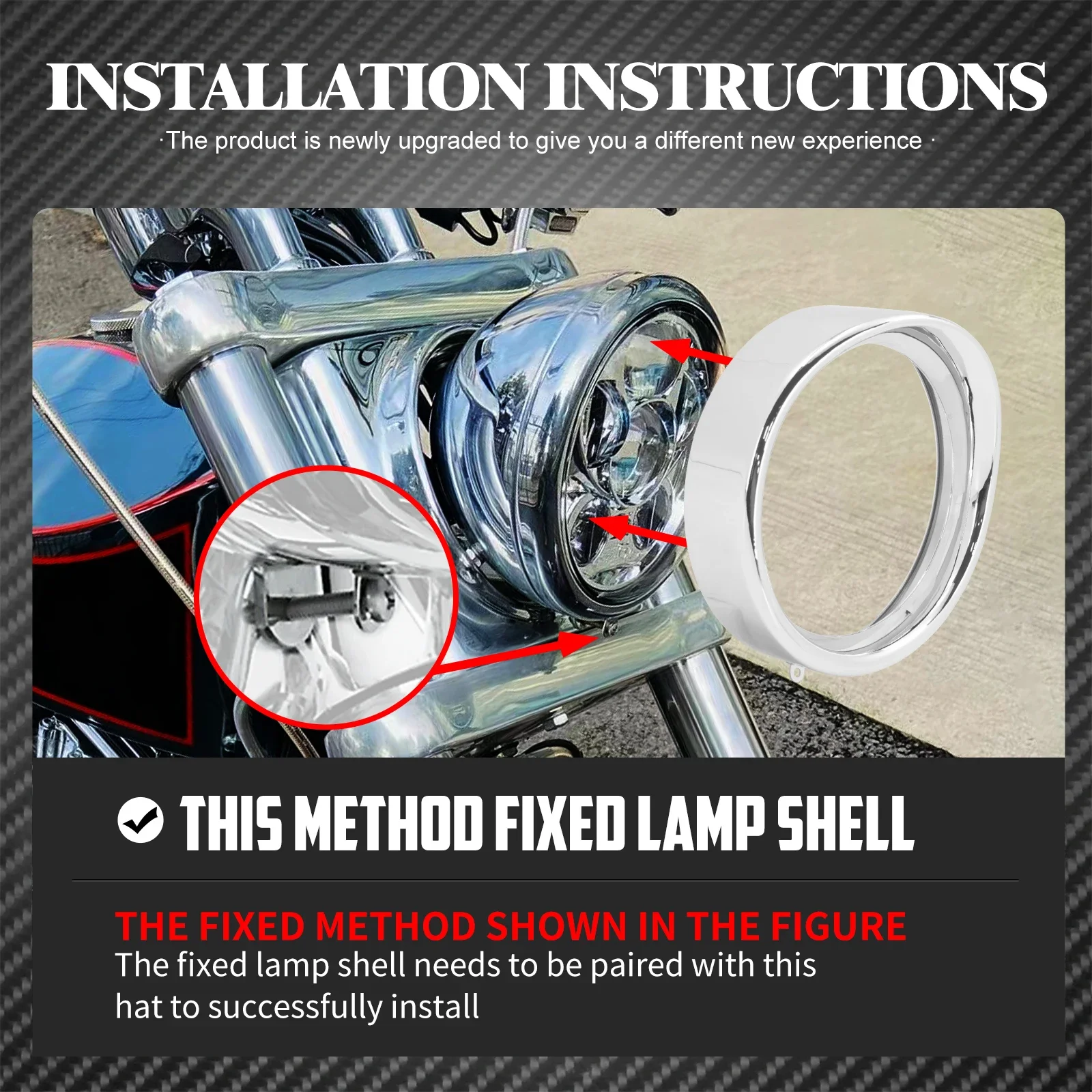 The Visor-Style Trim Rings recess the headlamp into the housing, and add a traditional "eyebrow" design to the headlamp shell. The trim ring stretches the profile of the bike for a long, lean appearance.