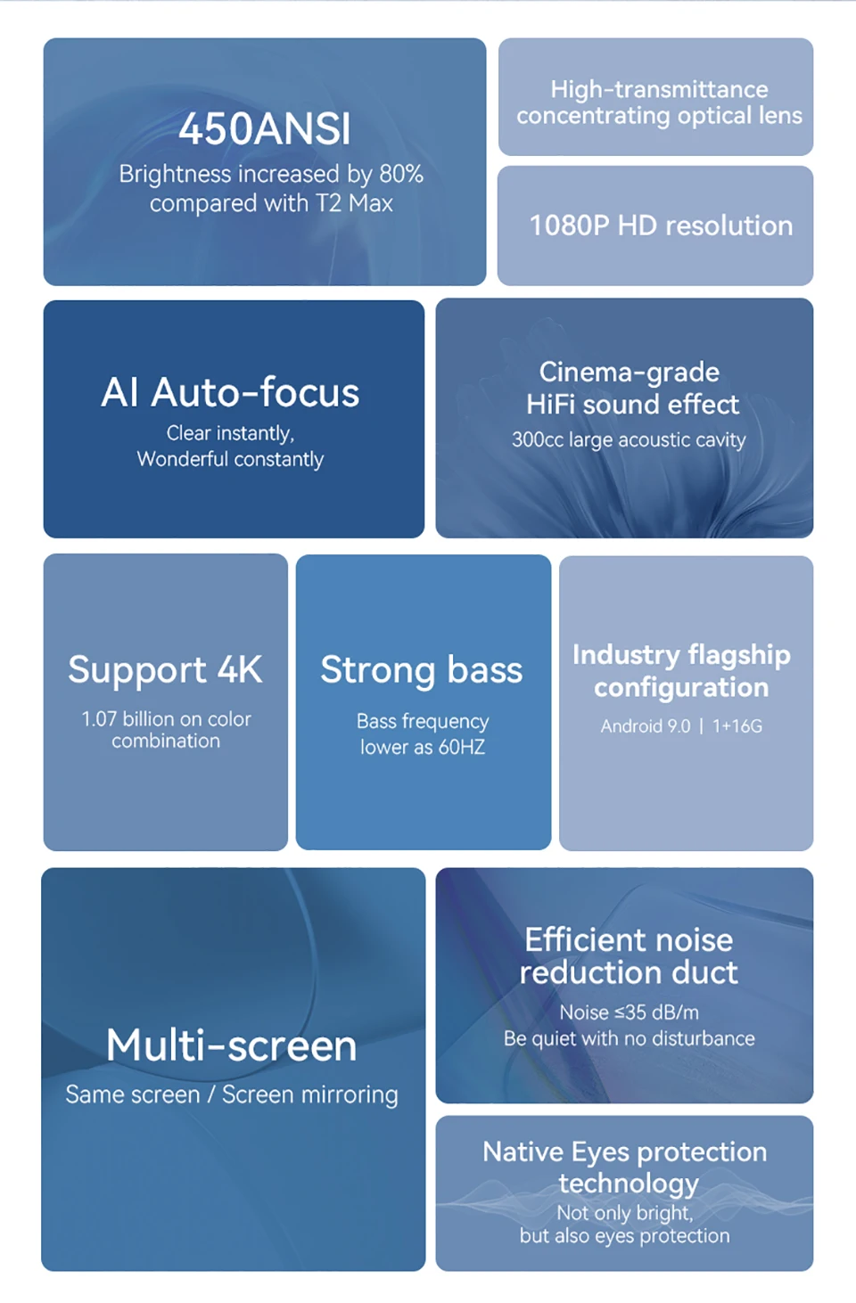 Wanbo NOVO T2 Max Projetor 1080p Full Hd Android 9.0 Mini Wifi Auto Foco 450Ansi Projetor Portátil HIFI Som Casa Ao Ar Livre