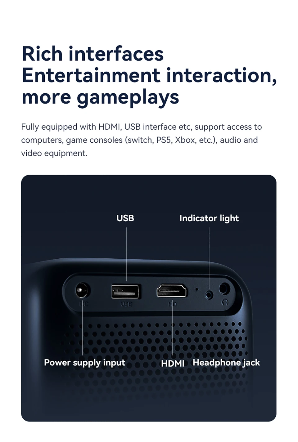 Relação de entrada: HDMI * 1 / USB * 1 / 3.5mm / DC * 1