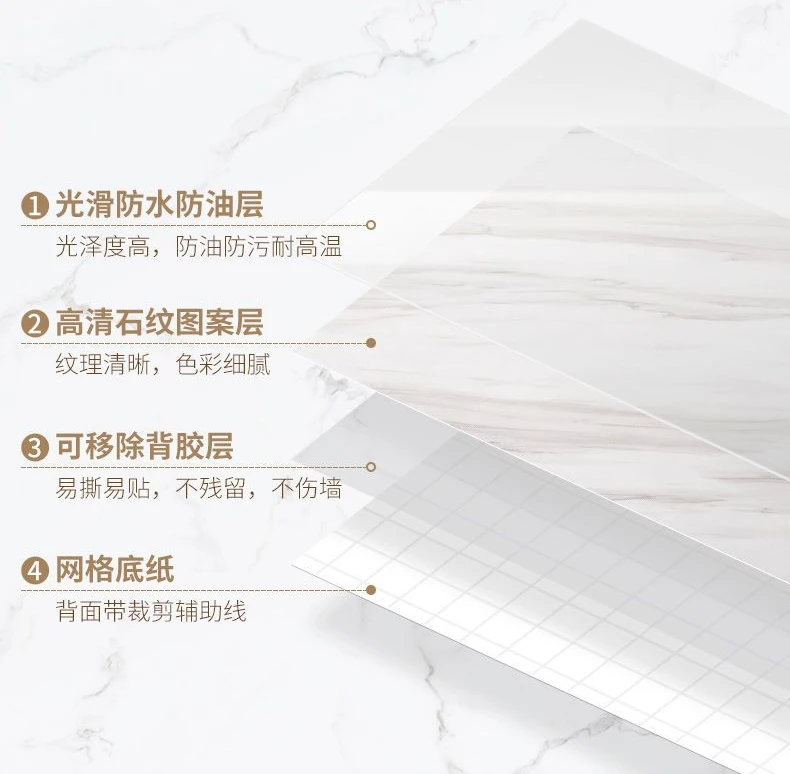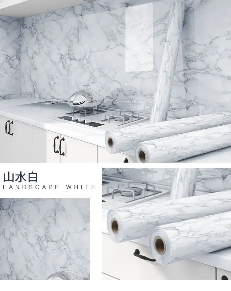 Waterproof Oil Proof Wall Adhesive Wallpaper, Marble Decor Sticker, Cozinha e Banheiro, Renovação Papel Decorativo, Largura 80cm