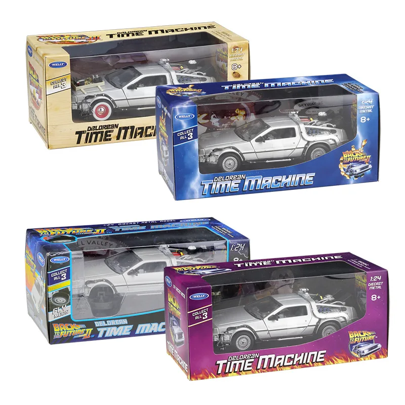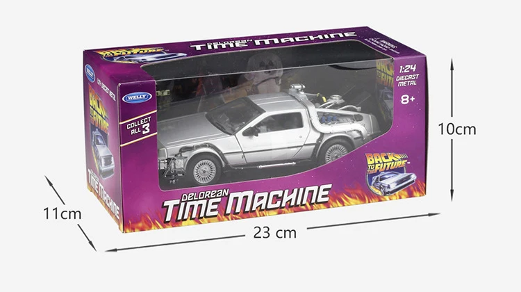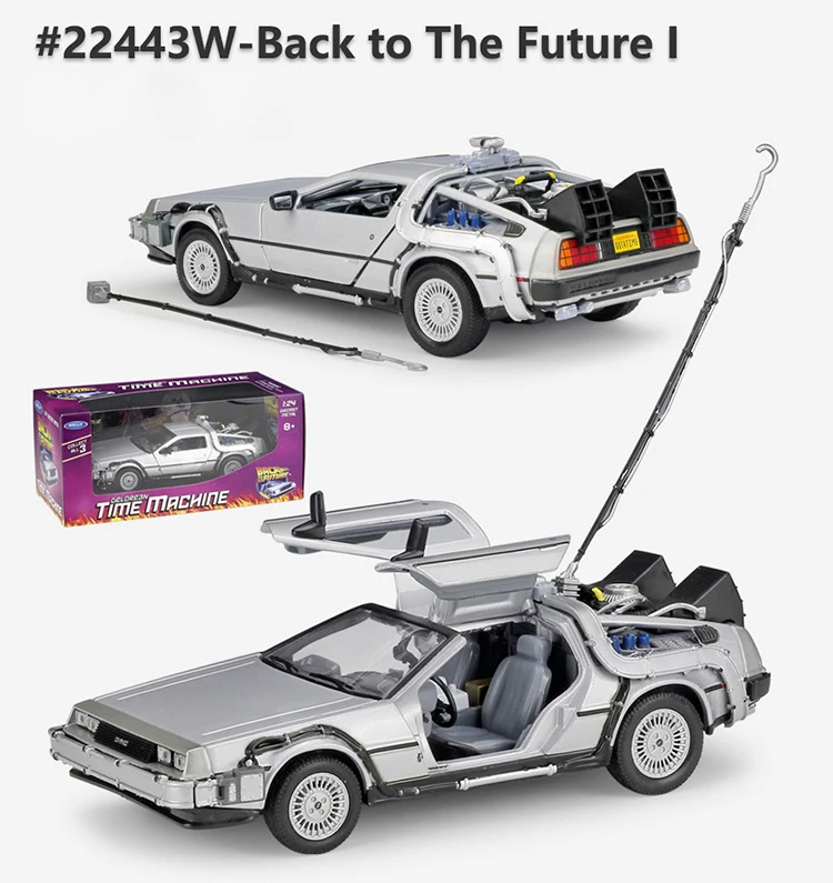 Welly diecast 1:24 escala modelo de carro brinquedo delorean para filme de volta para o futuro parte 1/2/3 DMC-12 carro de brinquedo de liga de metal para crianças presente