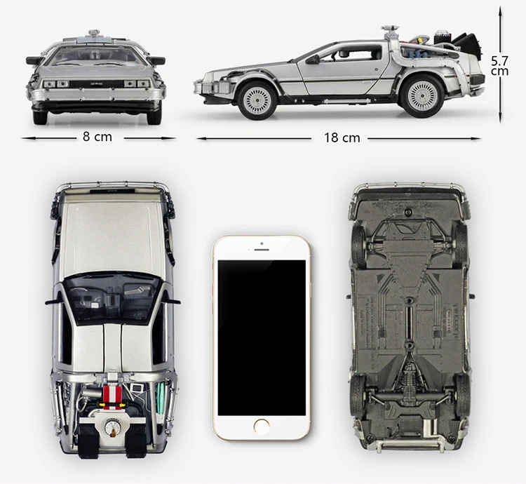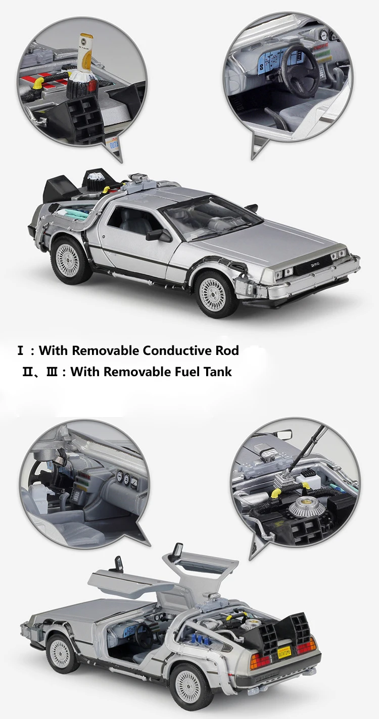 Bem-moldado em escala 1:24 modelo de carro brinquedo Delorean para filme de volta para o futuro parte 1/2/3 DMC-12 carro de brinquedo de liga de metal para crianças presente