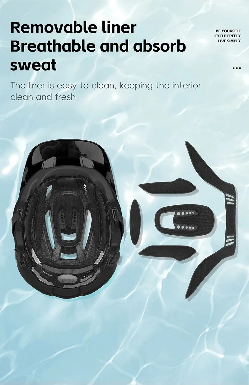 O design do capacete moldado integralmente oferece proteção e conforto superiores, tornando-o ideal para mountain bike.