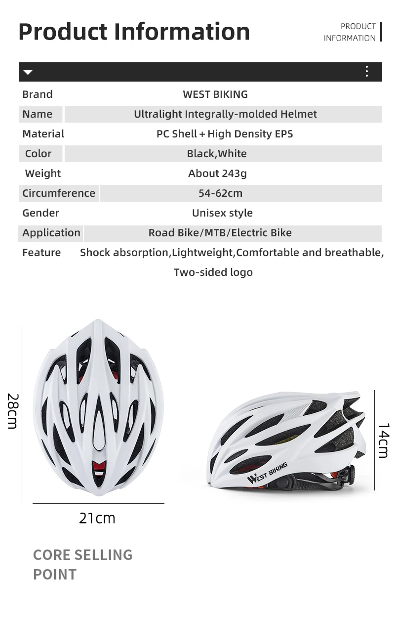 West biking ultraleve capacete de ciclismo moldagem integrada mtb capacete da bicicleta estrada das mulheres dos homens ciclismo boné segurança acessórios da bicicleta