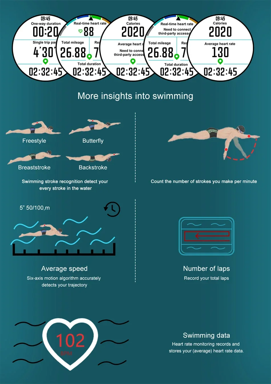 Chamada Bluetooth, vários estilos de menu 3D, suporte para mais de 200 mostradores, mais de 100 modos esportivos, treinamento respiratório, discagem personalizada (discagem de vídeo), cronômetro, nível de brilho, sono real, frequência cardíaca real, envio de informações, música remota, foto remota tirando, clima em tempo real, localização de telefone celular (conectado ao celular), reprodução de música Bluetooth, proteção por senha, calculadora, exibição em tela dividida, rápida.Seleção de modo inteligente e assista, um link, vidro à prova de explosão, bússola, vários jogos, vários relógios fora da tela, toques independentes, música local, reprodução de vídeo, transmissão de dados USB, TWS, álbum de fotos, tela sempre brilhante, integrado GPS, mapa offline.