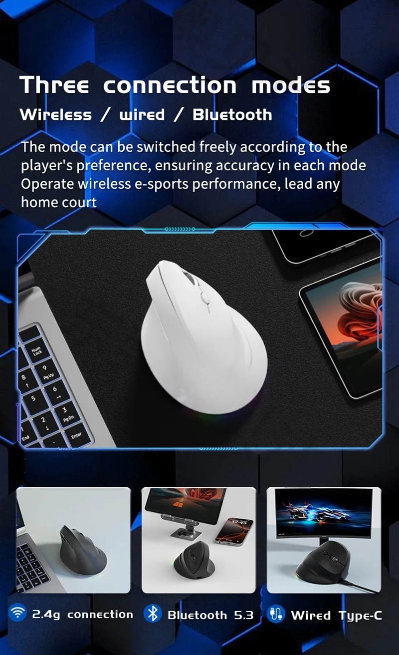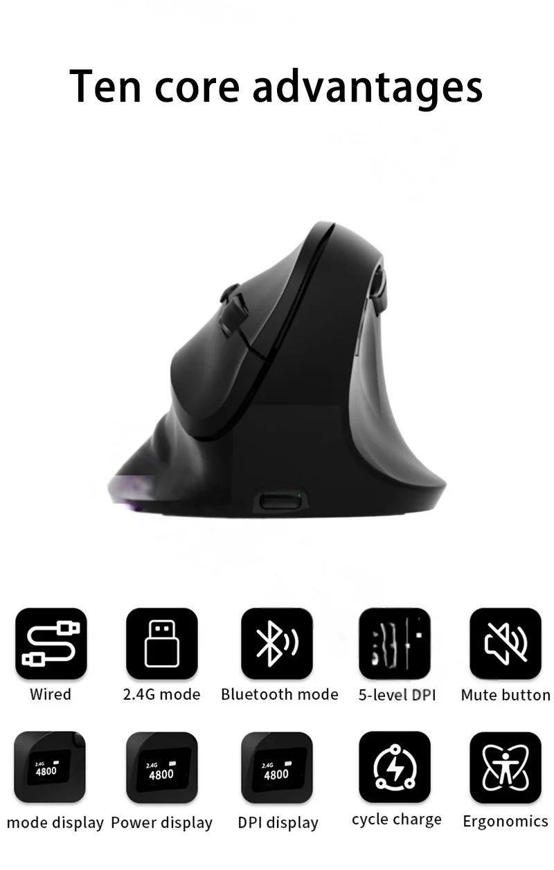 - > Xiaomi mouse vertical tri-mode com display de nível de bateria ergonômico personalizado aperto lateral 4800 dpi mudo mouse de escritório para jogos