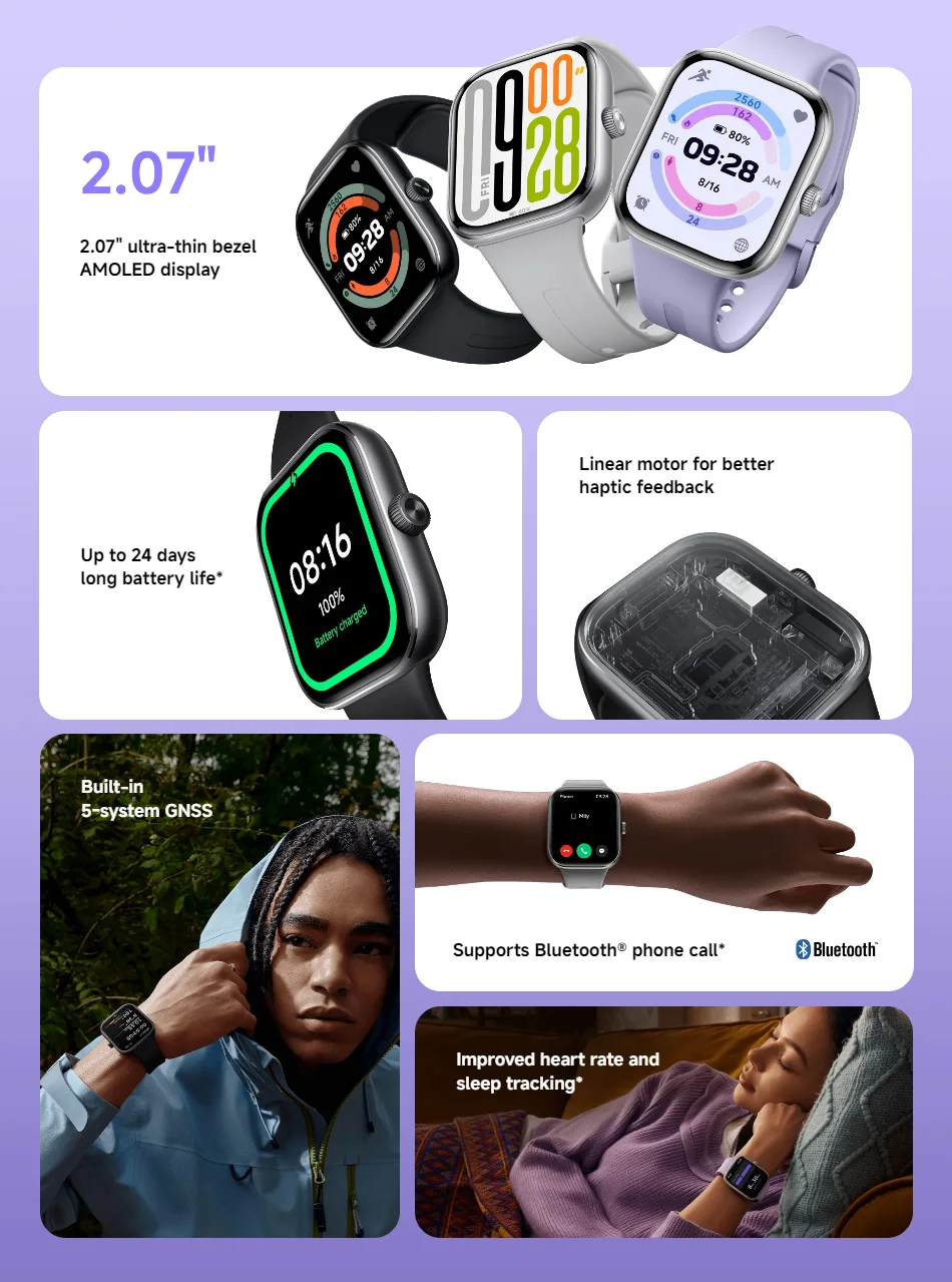 - > Xiaomi redmi watch 5 versão global 2.07 "60hz tela amoled embutida gnss bluetooth chamada mais de 150 modos esportivos 24 dias de vida útil da bateria