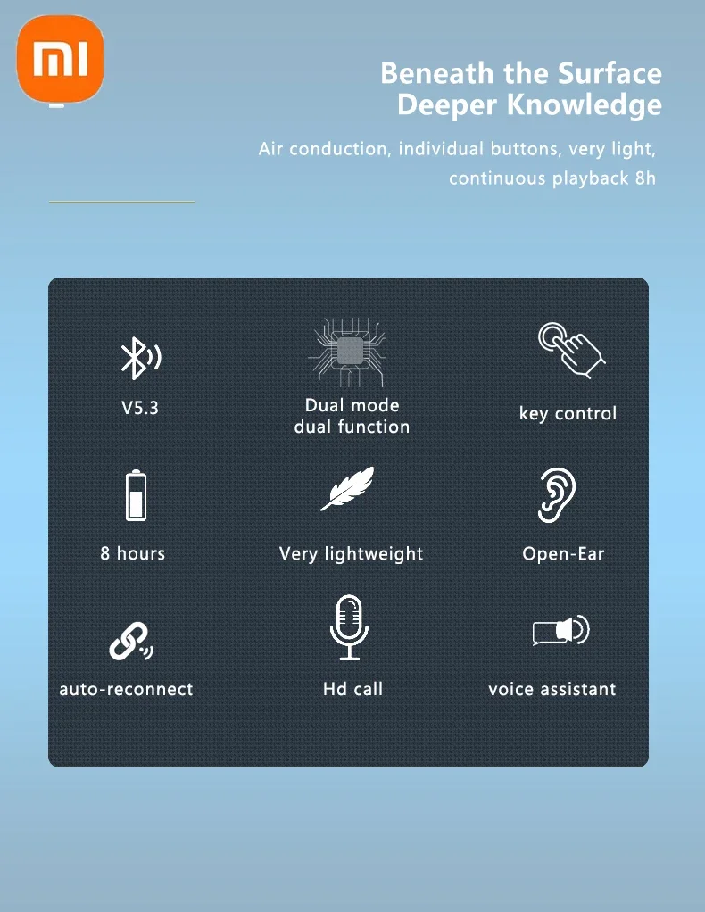 Xiaomi sem fio bluetooth 5.3 fones de ouvido condução óssea à prova dwaterproof água estéreo over-ear esportes fones com microfone