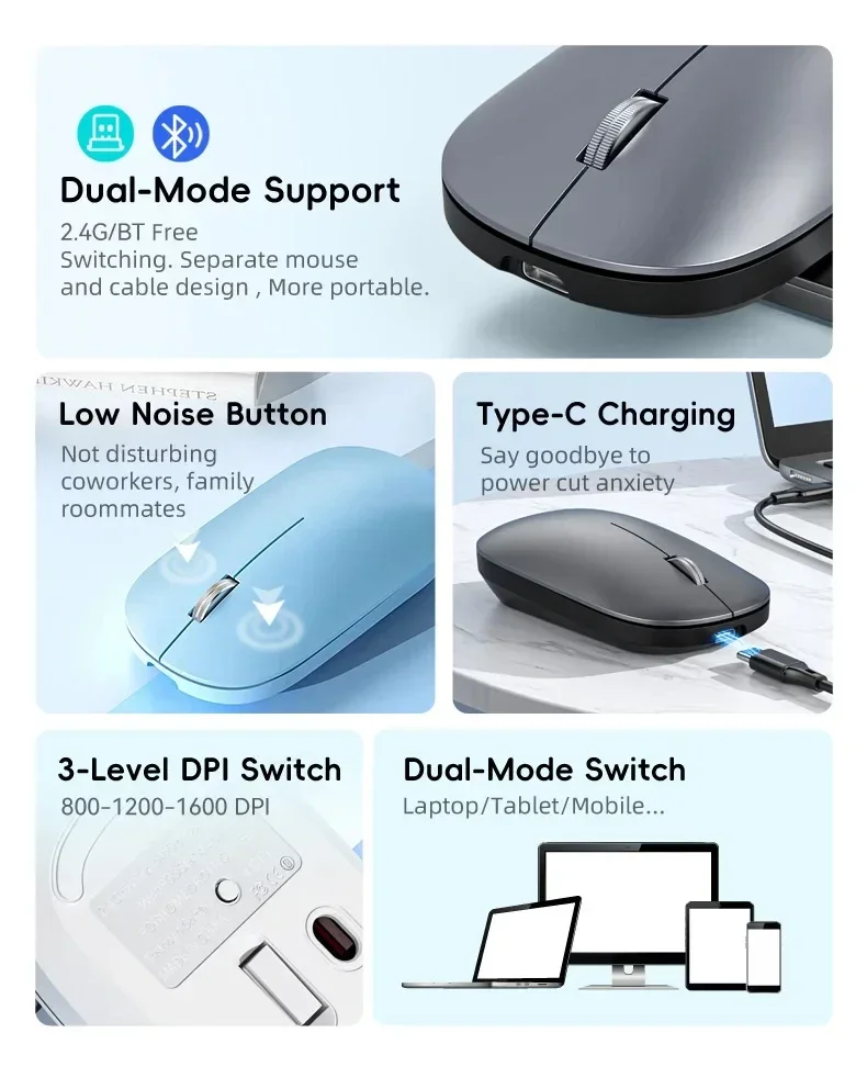 【Modo duplo】O mouse pode ser facilmente conectado via Bluetooth e um receptor 2.4G.