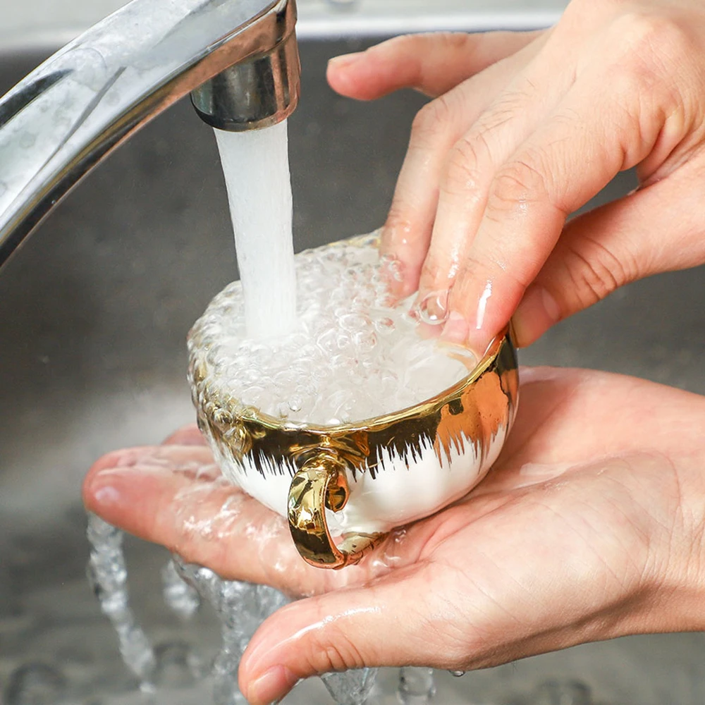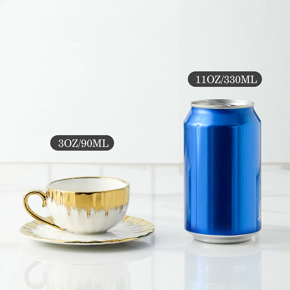 Xícara De Café De Porcelana E Pires Conjunto Com Guarnição De Ouro, Copos De Cerâmica Com Pires, Copos De Espresso, 2.5 oz, 6 Conjuntos