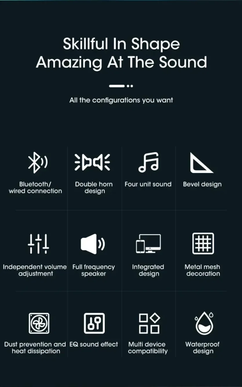 • Conectividade Bluetooth:Experimente uma transmissão de áudio perfeita com a conectividade Bluetooth da PC Soundbar, perfeita para uso em TV, PC e laptop.